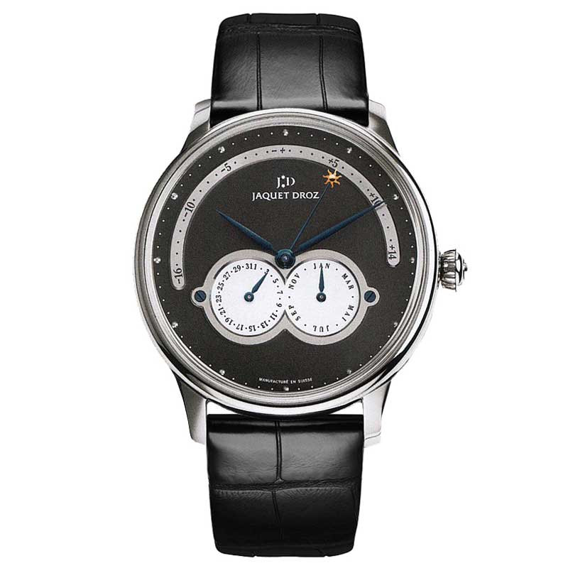 자케 드로가 28개 한정판으로 제작했던 균시차 워치. 다이얼 상단에 반원 형태로 균시차 인덱스를 배치하고, 태양 형태의 팁이 달린 핸즈를 적용해 마치 하늘에서 태양이 움직이는 듯 연출했다. 다이얼 하단의 2개 서브다이얼에는 날짜와 요일을 표시한다. 오토매틱 칼리버 3666-4로 구동하며, 더블 배럴로 약 72시간의 파워리저브를 구현했다.
