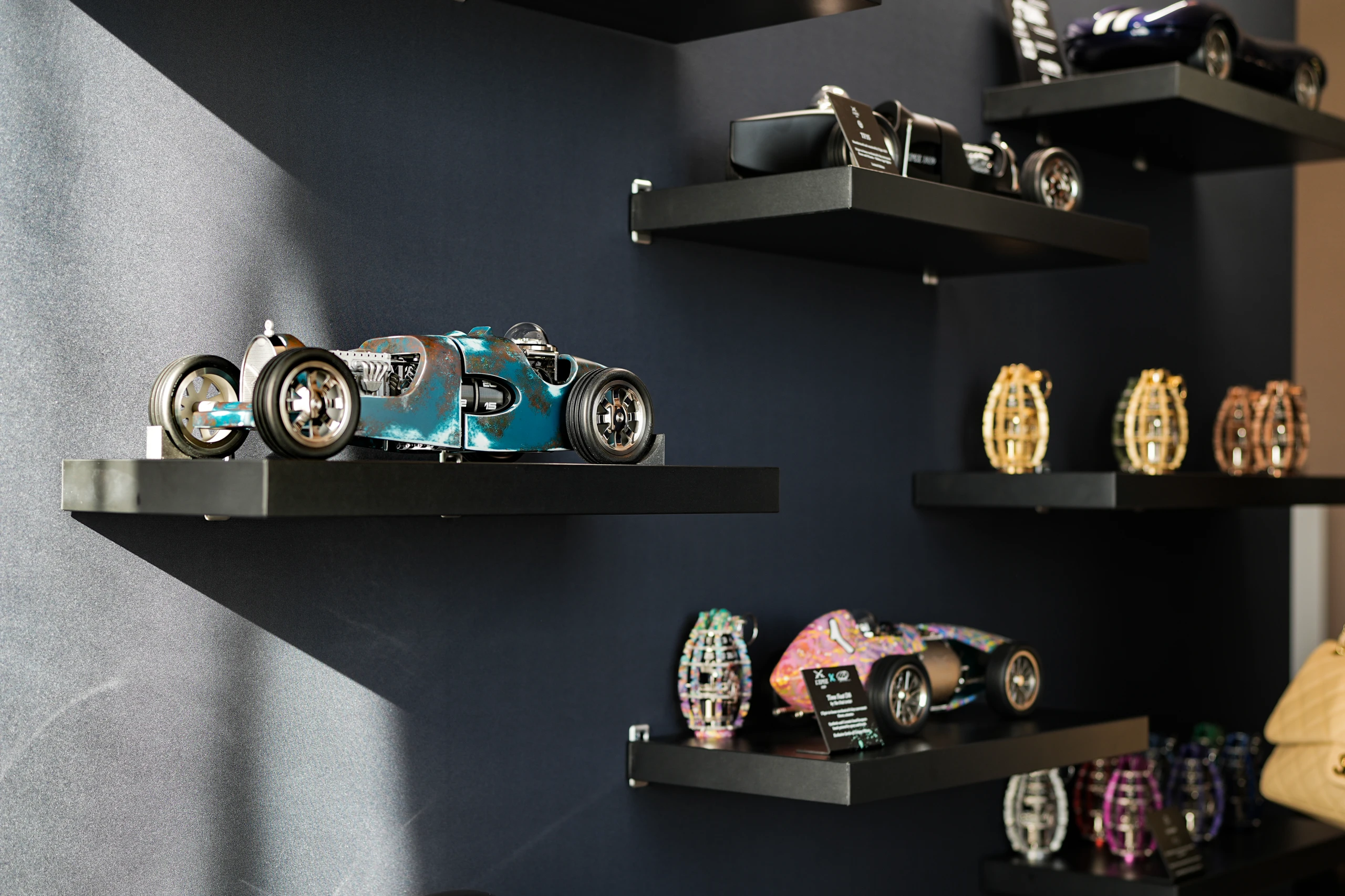 우리가 방향성을 제시하는 경우도 있다. 예를 들면, 이 타임 패스트 “레이스드(Raced)”는 1950년대에 활약한 초창기 F1 자동차에서 아이디어를 얻었다. 당시에는 지금과 같은 콘크리트 바닥이 아닌 진흙탕에서 달리는 일이 허다했다. 경주 중에 자동차에서 기름이 새어 나오기도 했다. 작업을 맡은 아티스트는 막 트랙을 빠져나온 것처럼 진흙과 기름을 뒤집어쓴 자동차를 떠올리며 속도와 경주를 표현했다. 다른 아티스트는 비바람을 헤치고 나아가는 자동차의 속도와 오래된 이미지를 파티나 기법을 통해 구현했다. 속도를 주제로 두 아티스트가 서로 다른 방식으로 차를 해석한 것이 포인트다. 이처럼 기술과 예술에는 경계가 없다. 기술적 역량과 예술적 역량을 섞는 것이 우리가 하는 일이다.