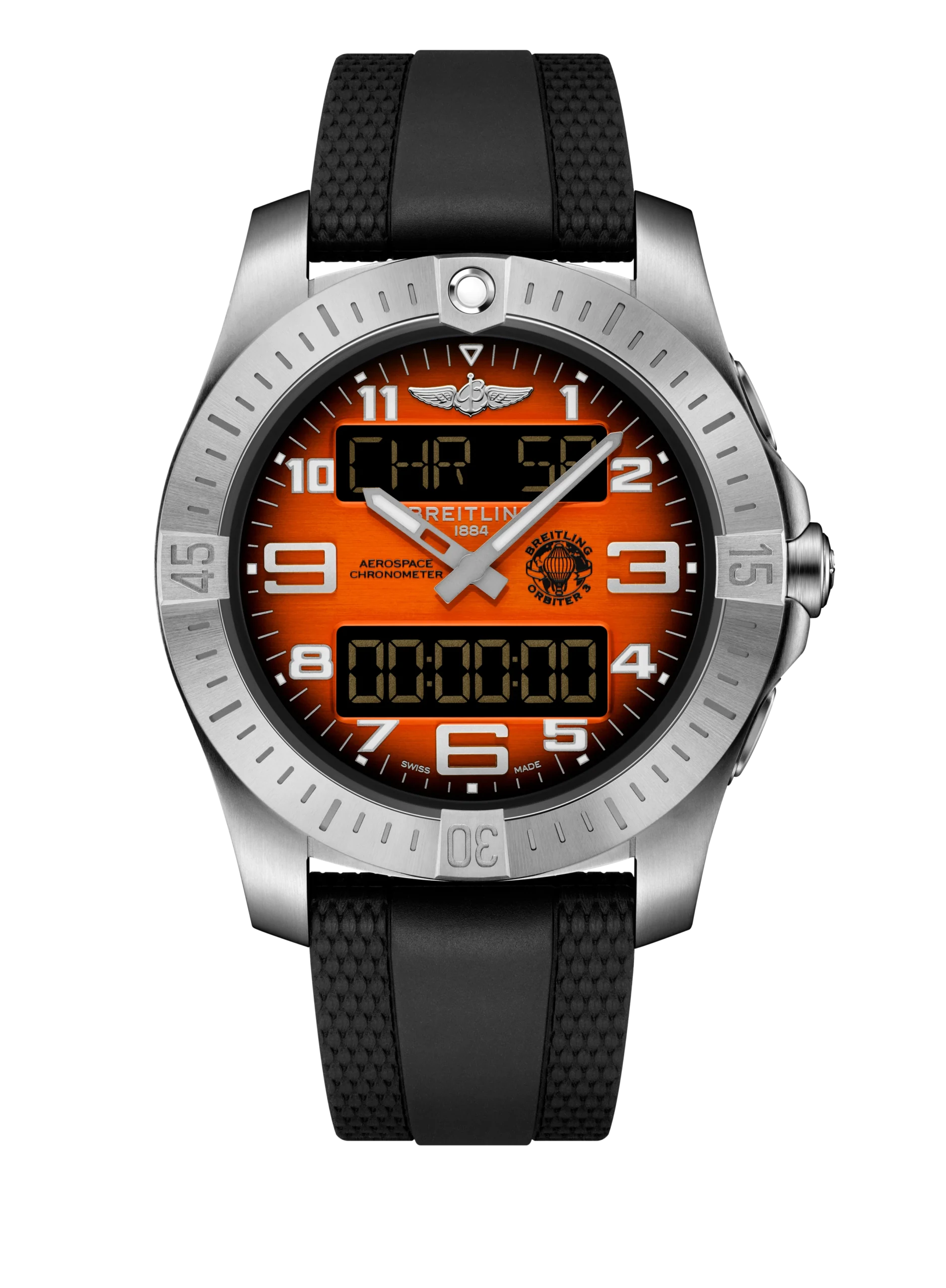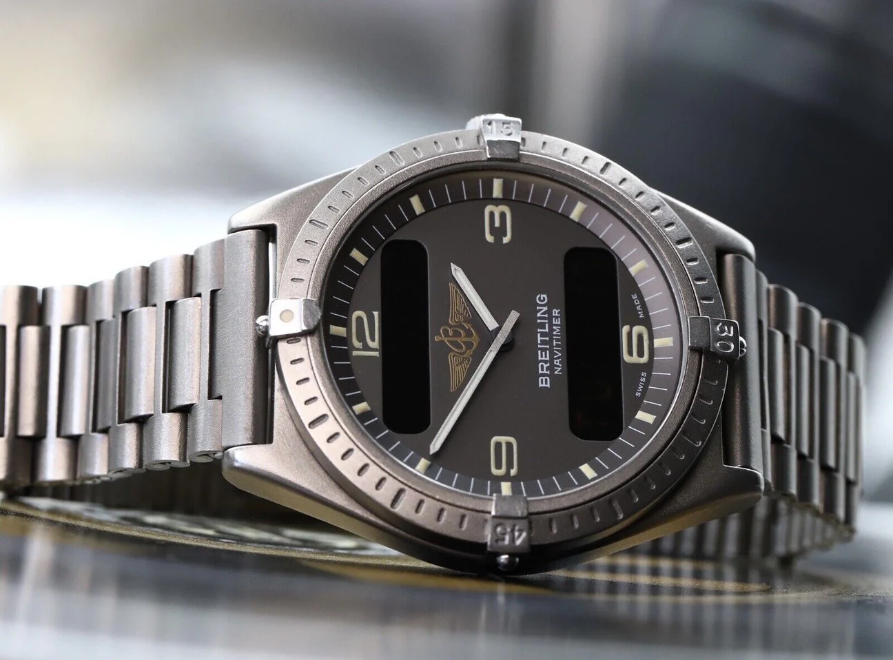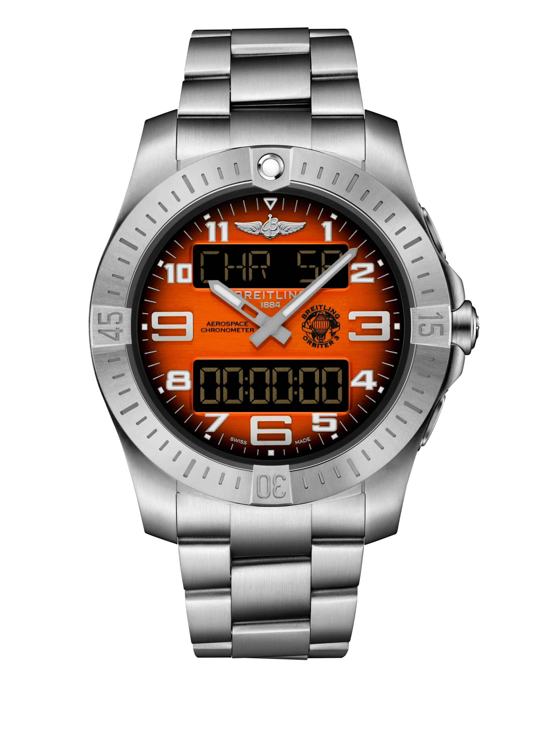 브라이틀링 에어로스페이스는 1985년 처음 등장했다. 무려 40년 동안 중단 없이 이어졌으니 쿼츠 워치 중에서는 꽤 독보적인 헤리티지다. 브라이틀링을 인수하고 크로노맷을 성공시킨 에른스트 슈나이더(Ernest Schneider)는 그 다음 행보로 고성능 쿼츠 툴 워치를 생각했다. 바로 에어로스페이스 Ref. 80360이었다. 이 시계는 지름 40mm, 두께 9mm의 티타늄 케이스에 아날로그-디지털 디스플레이를 갖췄으며, 단일 크라운으로 모든 조작이 가능했다. 출시 초반에 잠시 ‘내비타이머’라는 이름을 빌려 썼던 이 시계는 원래의 내비타이머가 그랬던 것처럼 많은 조종사들의 사랑을 받았다.