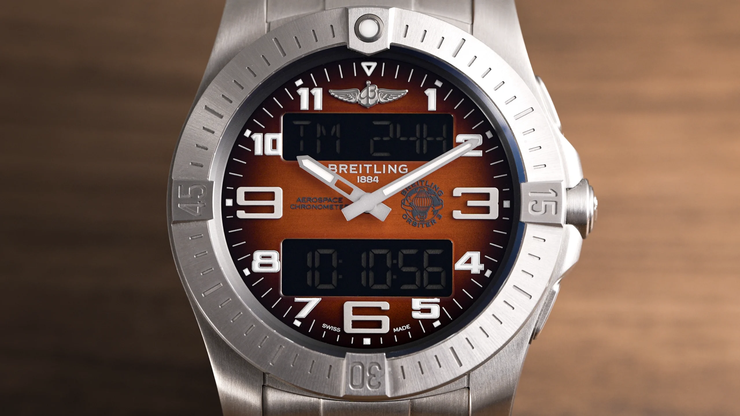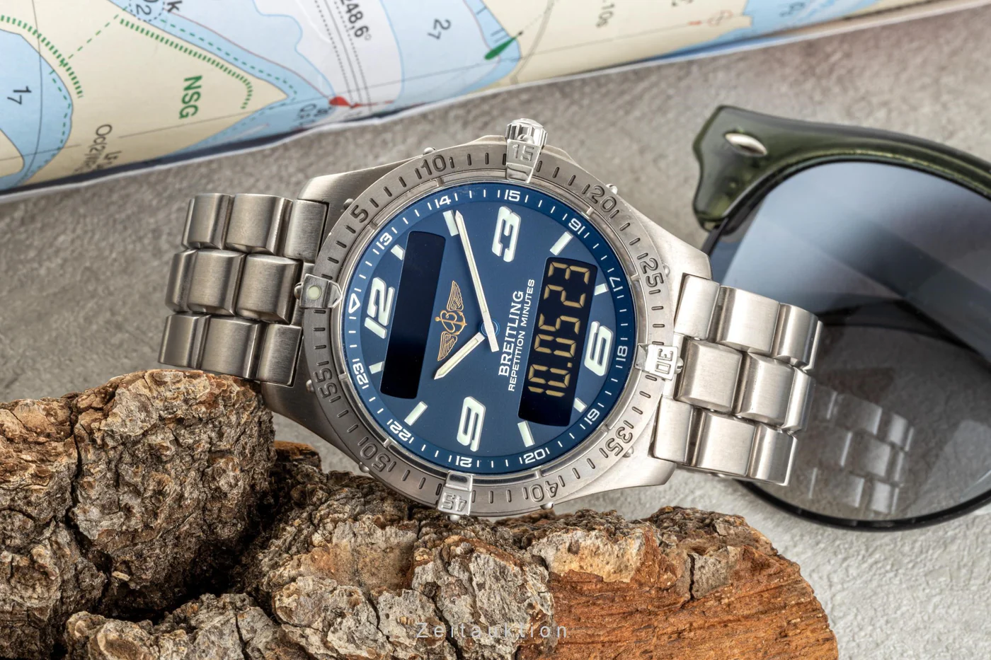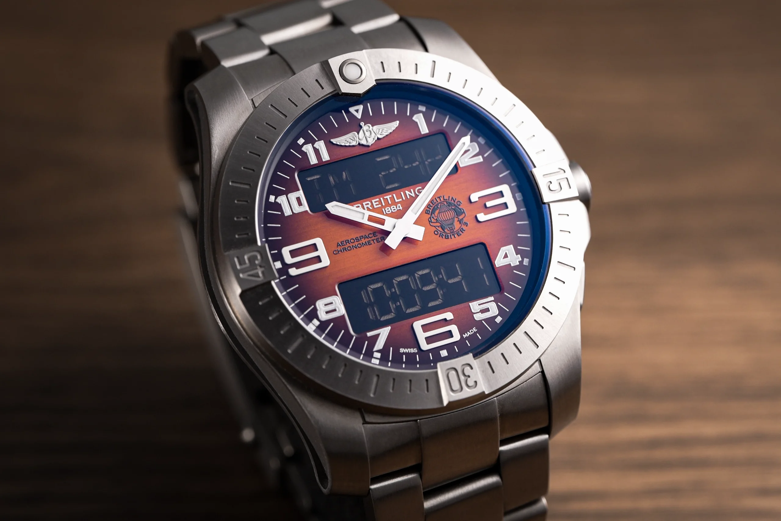 브라이틀링 에어로스페이스는 1985년 처음 등장했다. 무려 40년 동안 중단 없이 이어졌으니 쿼츠 워치 중에서는 꽤 독보적인 헤리티지다. 브라이틀링을 인수하고 크로노맷을 성공시킨 에른스트 슈나이더(Ernest Schneider)는 그 다음 행보로 고성능 쿼츠 툴 워치를 생각했다. 바로 에어로스페이스 Ref. 80360이었다. 이 시계는 지름 40mm, 두께 9mm의 티타늄 케이스에 아날로그-디지털 디스플레이를 갖췄으며, 단일 크라운으로 모든 조작이 가능했다. 출시 초반에 잠시 ‘내비타이머’라는 이름을 빌려 썼던 이 시계는 원래의 내비타이머가 그랬던 것처럼 많은 조종사들의 사랑을 받았다.
