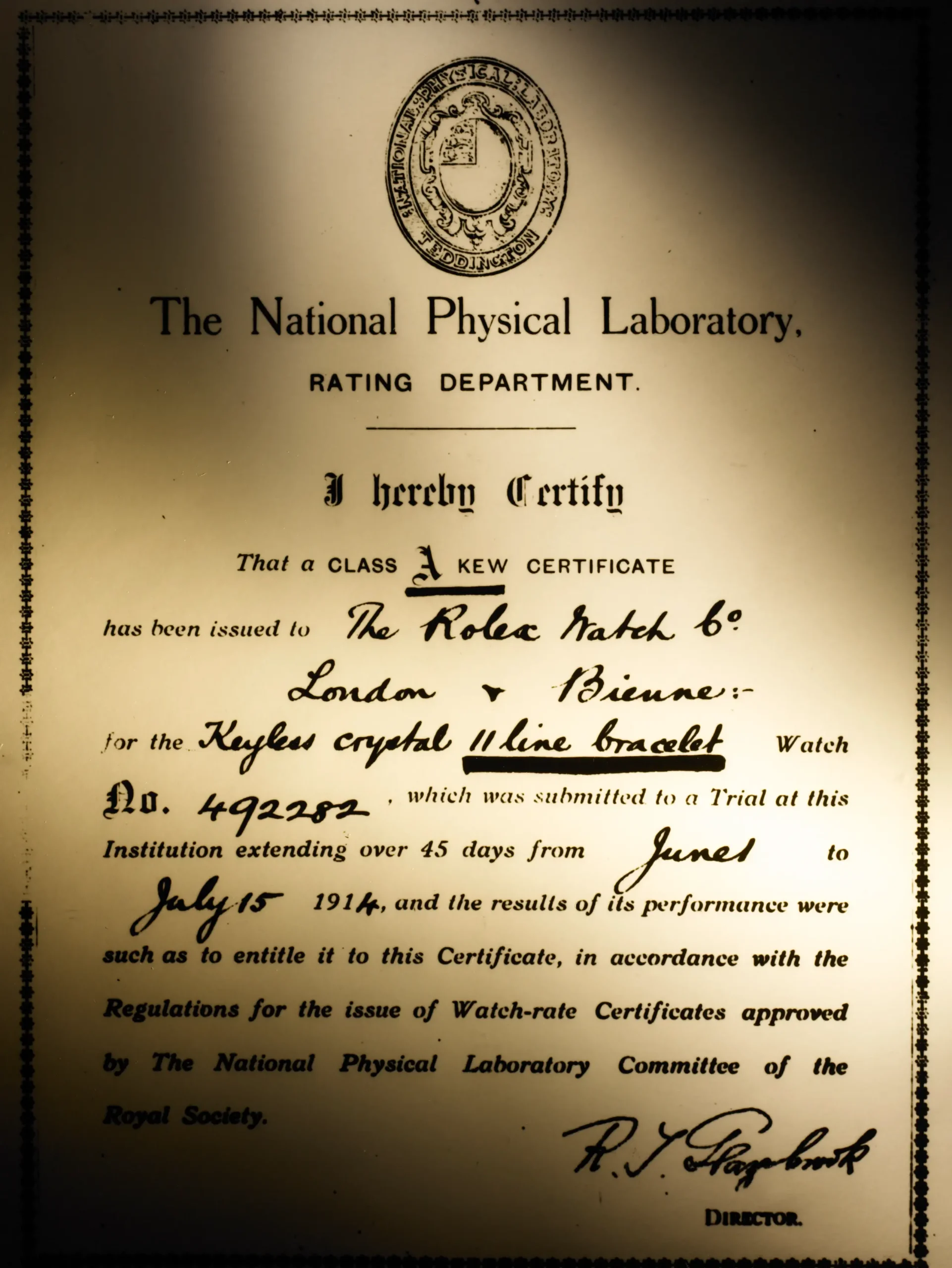 롤렉스(Rolex)는 초창기부터 공식 인증에 진심이었다. 1910년 스위스 비엔에 있는 공식 시계 평가 센터에서 크로노미터 인증을, 4년 뒤에는 영국 런던의 큐 천문대에서 크로노미터 인증을 받았다. 롤렉스는 자사 제품의 뛰어난 성능과 이를 뒷받침할 수 있는 체계를 일찌감치 구축하여 홍보에 활용했다. 급기야 1950년대 후반에는 최상급 크로노미터(Superlative Chronometer)라는 개념을 정립했다. 그리하여 데이트저스트와 데이-데이트 시계의 다이얼에 처음으로 최상급 크로노미터 공식 인증(Superlative Chronometer Officially Certified)이라는 문구가 등장했다. 롤렉스는 크로노미터의 기준을 끊임없이 뛰어넘으려 했으며, 이를 통해 권위를 더욱 공고히 했다.