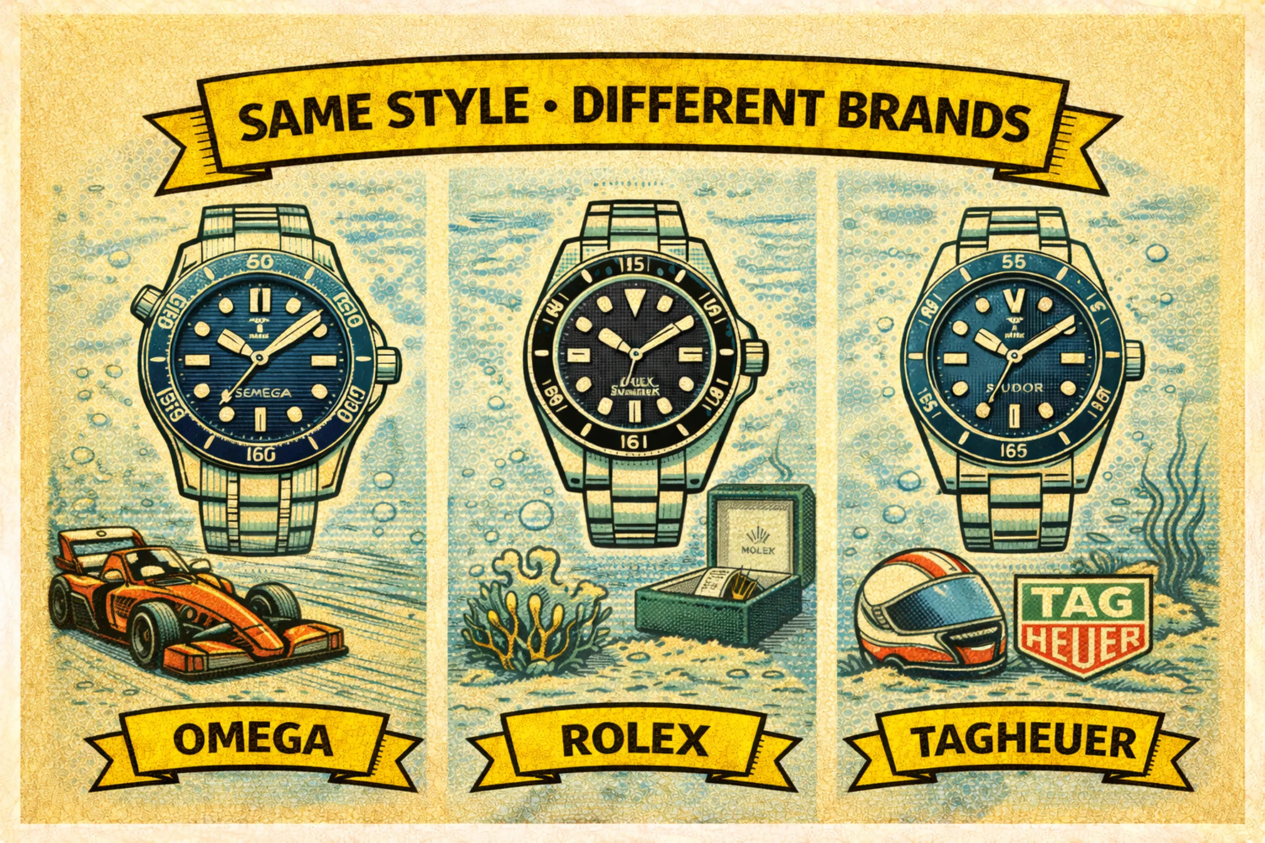 단일 브랜드에서만 3개 시계를 구성하는 방법이다. 롤렉스에서 ‘서브 마리너 + 데이트저스트 + GMT마스터2’, 오메가에서 ‘문워치 + 다이버300 + 아쿠아테라’, 태그호이어에서 ‘모나코 + 까레라 + 아쿠아레이서’, 브라이틀링에서 ‘내비타이버 + 프리미에르 + 슈퍼오션’, 파네라이에서 ‘라디오미르 + 루미노르 + 섭머저블’을 조합하는 식이다. 누가 이렇게 살까 싶지만 의외로 시계 커뮤니티에서 종종 단일 브랜드 성애자들을 자주 목격할 수 있다. 하나의 브랜드에서 시계를 선택하는 만큼 디자인 언어의 일관성을 확보할 수 있고, 일정한 품질을 보장받을 수 있다. 또한 단일 브랜드에서 실적을 쌓으면 브랜드의 행사에 초청되거나 희소한 모델을 손에 넣을 수도 있다. 다만 컬렉션이 지나치게 좁아진다는 건 단점이다. 외부에 시계 애호가가 아닌 특정 브랜드만 소비하는 사람으로 보여질 위험도 크다. 특히 롤렉스라면 더욱 그러하다.