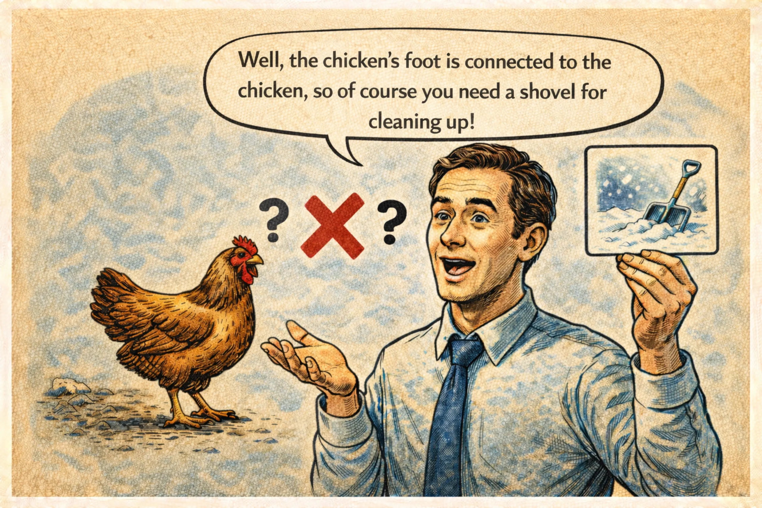 “닭발은 닭과 연결되어 있고, 그럼 당연히 청소할 삽이 있어야죠.”