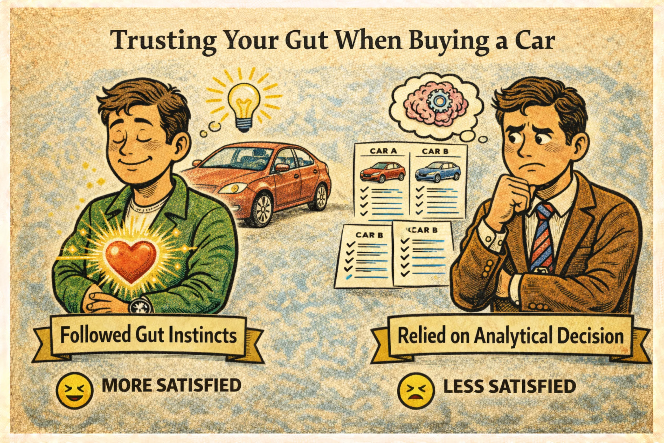 한 연구에 따르면, 큰 지출을 결정할 때(예를 들어 자동차를 사는 경우) 직감적인 이끌림 또는 육감을 따른 사람들이, 오랫동안 면밀히 따져 보고 결정한 사람들보다 만족도가 높았다고 한다. 우뇌는 당신(당신의 좌뇌 해석 장치)가 알지 못하는 더 큰 차원의 정보를 이미 알고 있을 수 있다. 물론 사람의 역량은 제각각이기 때문에 직감이 누구에게나 동일하지는 않을 것이다. 어떤 사람은 다른 사람보다 더 예민하게 상황을 파악하고 뛰어난 직감을 발휘한다. 모두가 패션 감각이 좋은 건 아니니까.