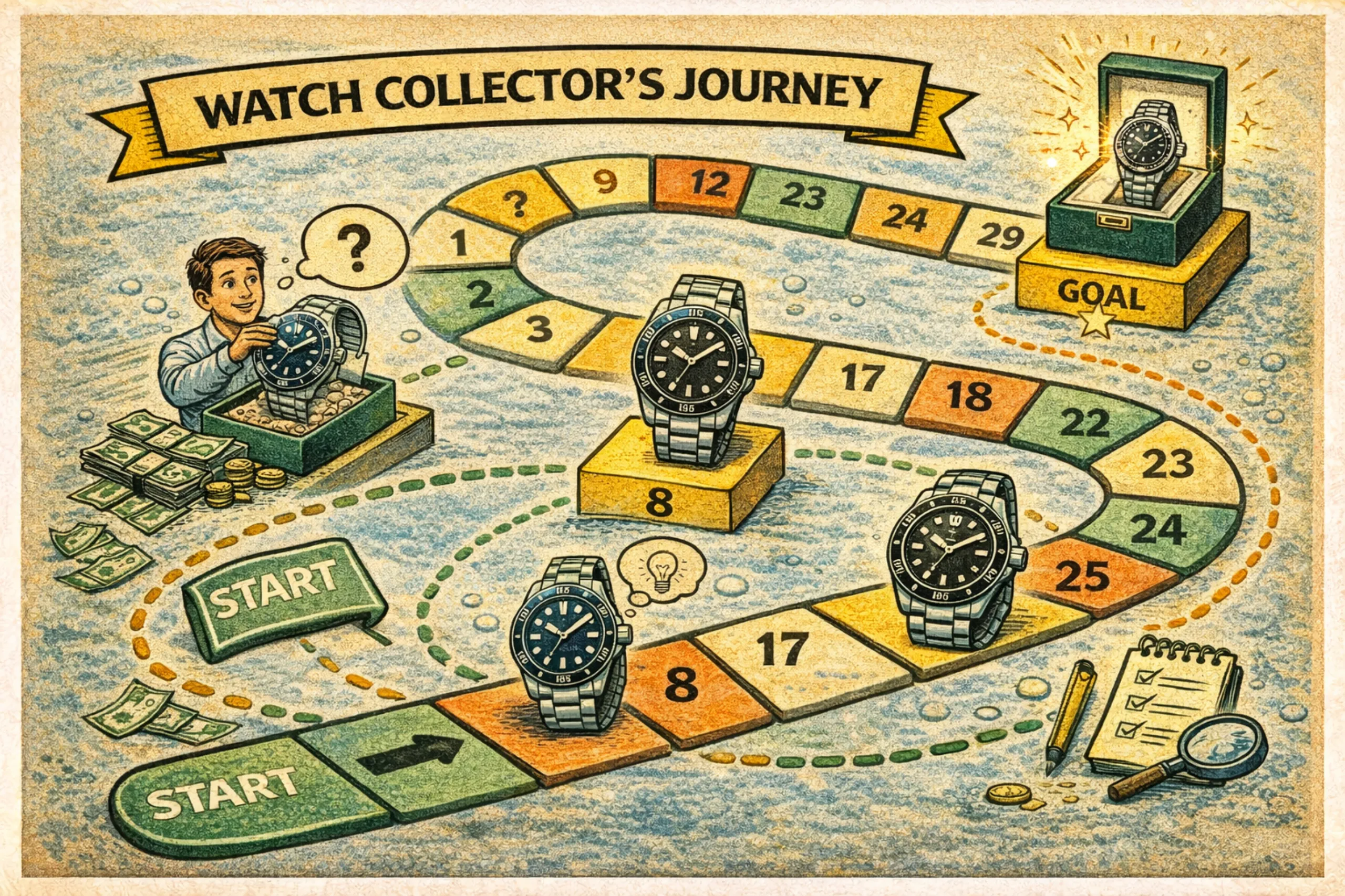 당신의 현재 컬렉션은 과거에 했던 수많은 선택의 합이다. 한꺼번에 여러 개의 시계를 구입하지 않는 이상, 대체로 시계 구입은 시차를 두고 순차적으로 일어난다. 그리고 그 모든 선택은 서로 긴밀하게 연결되어 있다. 당신은 기존에 가지고 있던 시계 혹은 경험에 기반하여 새로운 시계를 선택한다. 즉, 당신이 지금 구입하는 시계는 그 다음에 구입할 시계의 마중물이 된다.