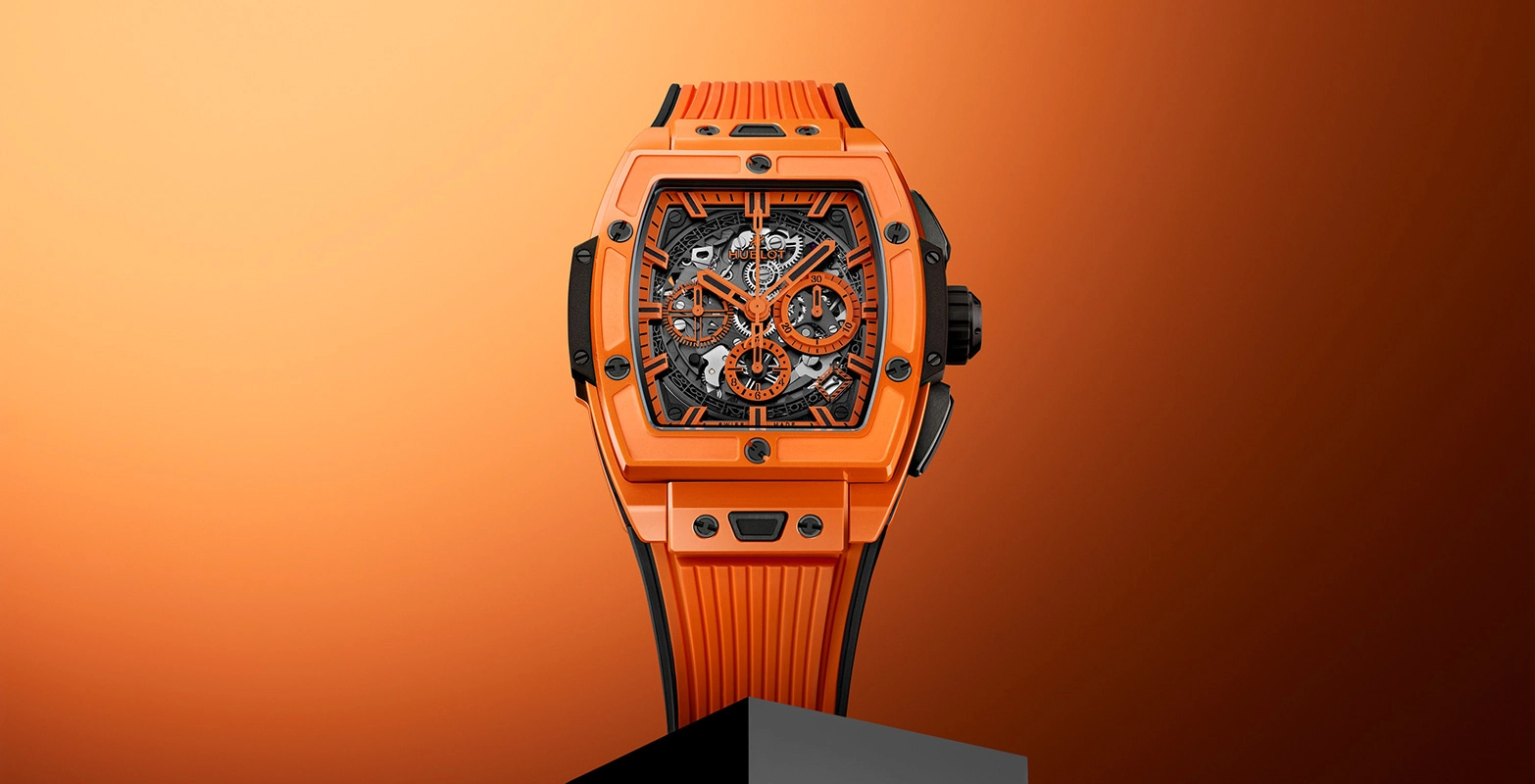 스테인리스 스틸 케이스는 전체를 유광 마감했다. 반면에 블랙 세라믹(ZrO2) 베젤은 무광 처리해 입체감을 살렸다. 파도처럼 보이는 홈이 새겨진 글라스백을 통해 무브먼트를 감상할 수 있다. 방수는 150m다. 두께는 41mm 모델이 13.26mm, 38mm 모델이 12.36mm로 약 1mm 정도 차이가 난다.