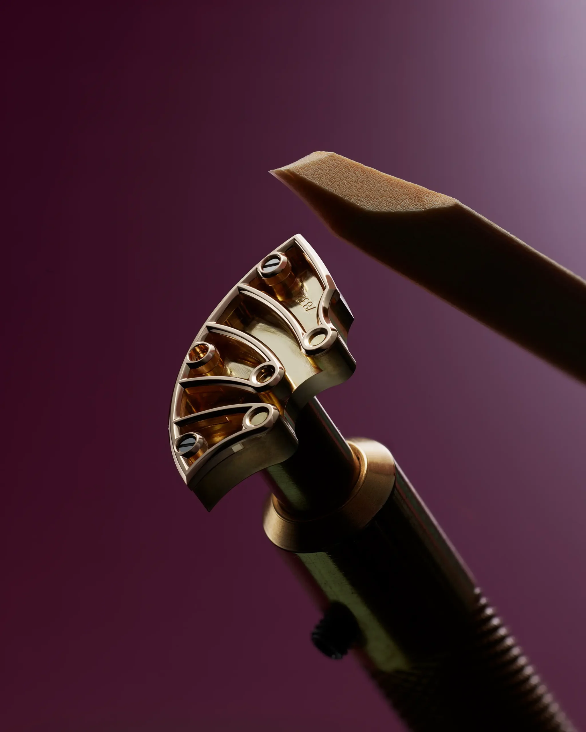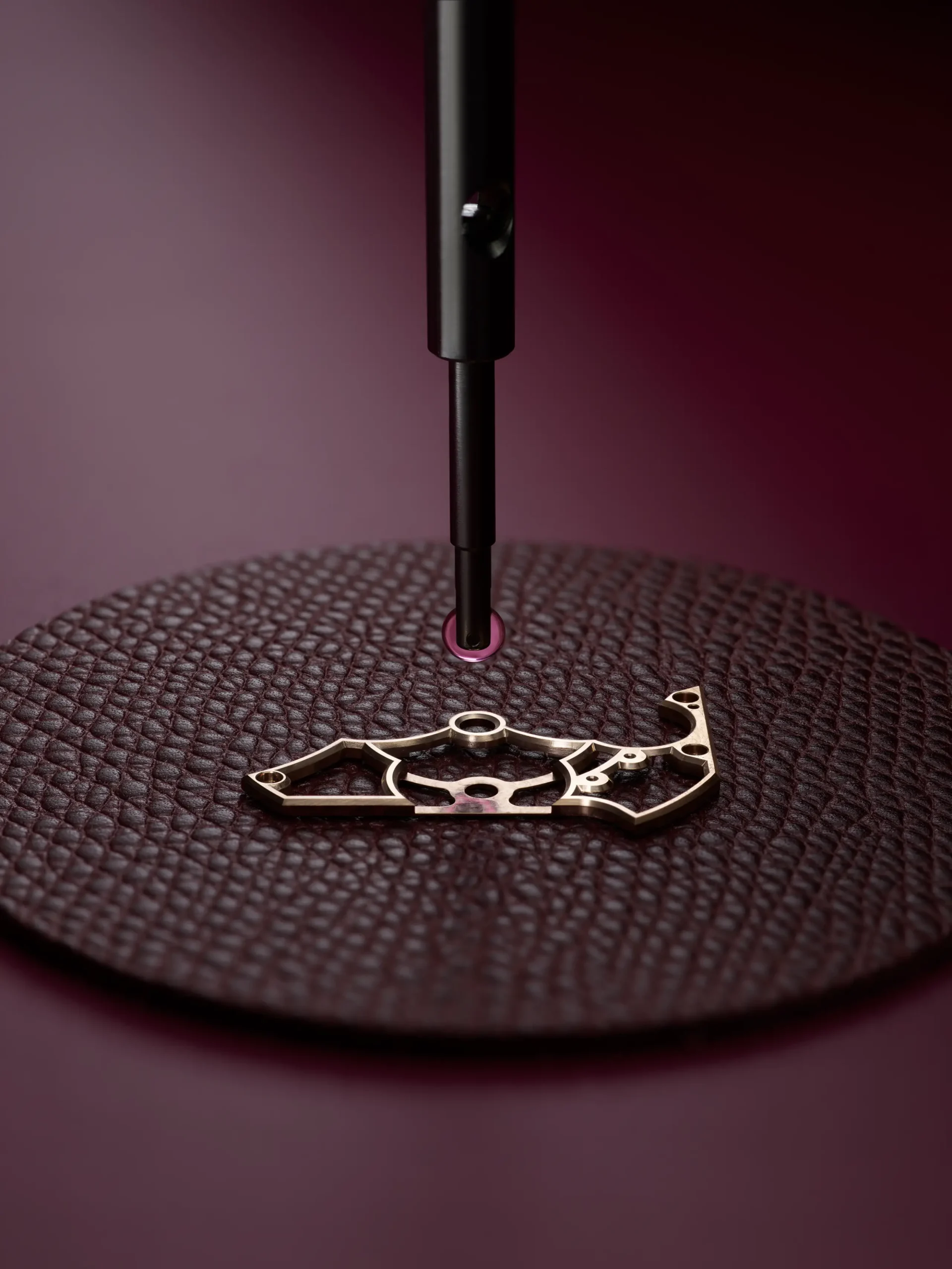“브리지와 플레이트를 솔리드 골드로 제작하기로 한 결정은 기술적이면서도 미학적인 선택이었습니다. 골드는 전통적인 피니싱에 아름답게 반응하는 귀금속으로, 수작업 흔적이 더욱 또렷하게 드러납니다.” 라 파브리끄 뒤 떵 공방의 설립자이자 마스터 워치메이커 엔리코 바르바시니(Enrico Barbasini)가 설명했다.