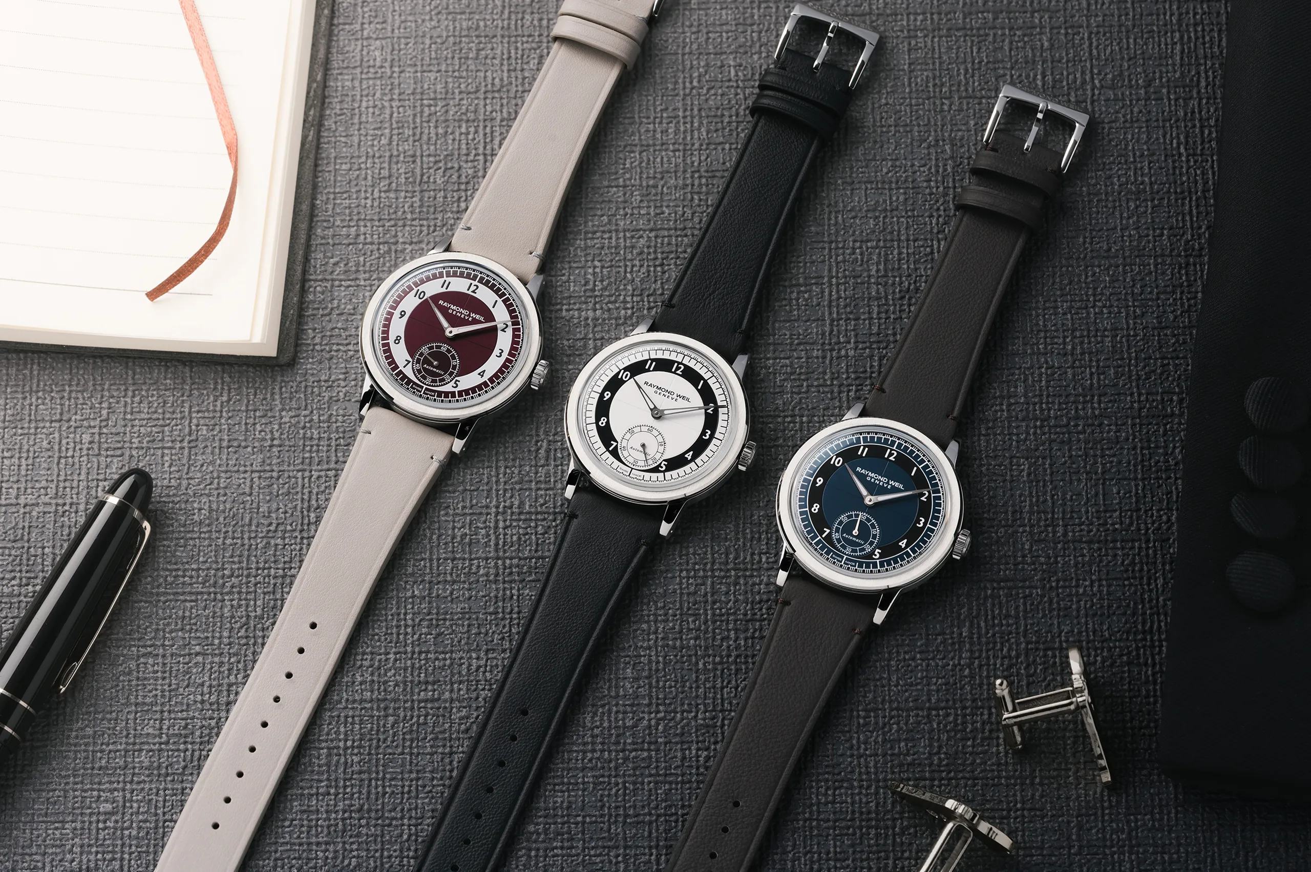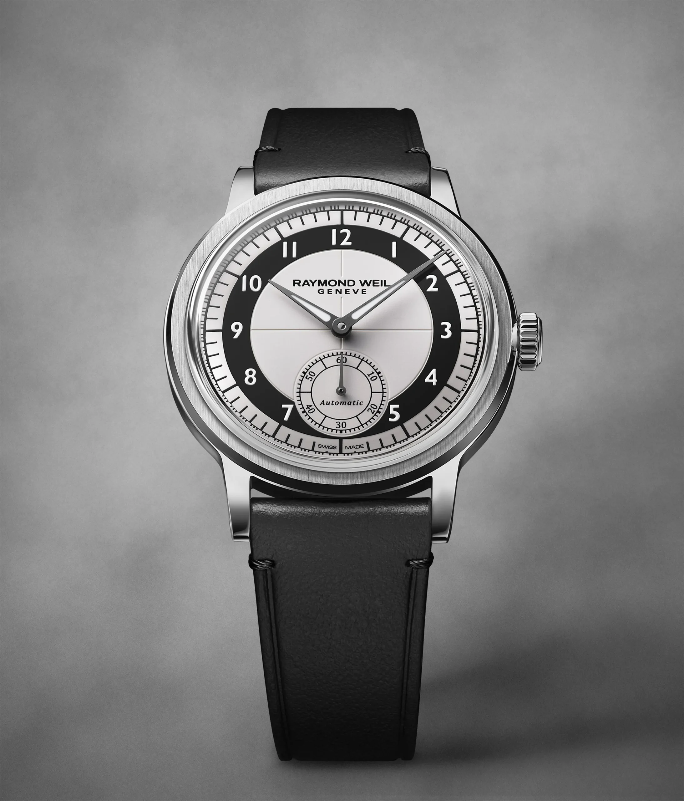 레이몬드 웨일(Raymond Weil)밀레짐 스몰 세컨즈(Millesime Small Seconds)로 2023년 제네바 시계 그랑프리(GPHG)에서 챌린지 부문을 수상했다. 단정하고 고전적인 스타일이 많은 이들에게 강렬한 인상을 주었던 것으로 보인다. 수상작의 뒤를 잇는 이번 신제품은 턱시도 다이얼에서 영감을 얻은 디자인이 특징이다. 강렬한 대비와 아르데코 스타일이 돋보이는 이 시계는 레이몬드 웨일의 창립 50주년을 기념하는 의미를 담고 있다.