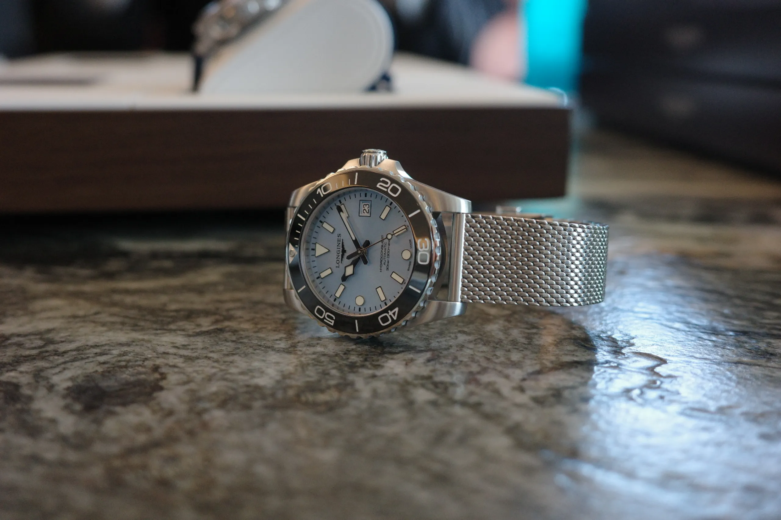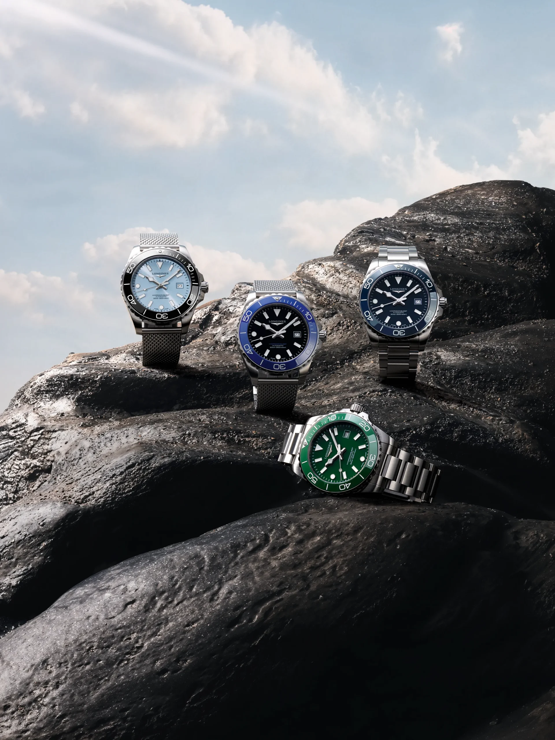 이번 컬렉션에서 가장 눈에 띄는 것은 밀라네즈 메시 브레이슬릿의 도입이다. 하이드로콘퀘스트 역사상 처음으로 선보이는 이 옵션은, 고급 스테인리스 스틸 소재에 전체 브러싱 마감과 측면 폴리싱 처리를 더해 헤리티지와 모던함이 조화를 이룬다. 테이퍼드 메시 구조는 통기성과 착용감을 동시에 만족시키며, 미세 조정이 가능한 폴딩 잠금 장치는 완벽한 핏을 보장한다.