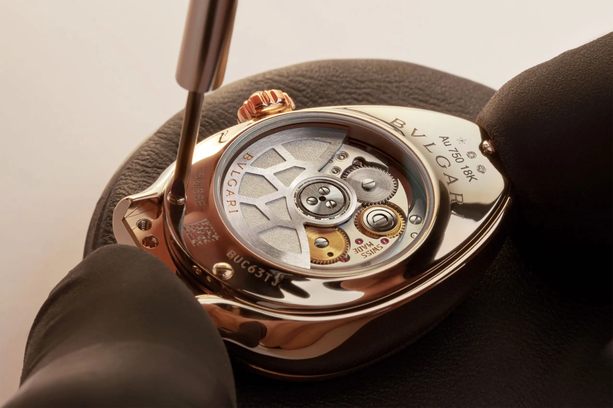 무브먼트는 지난해 공개한 레이디 솔로템포 BVS100을 탑재했다. 이 무브먼트는 세르펜티 케이스 형태에 맞춘 크기와 부피 기준을 충족하도록 스위스 르 상티에에 위치한 불가리 매뉴팩처에서 자체 개발했다. 시간당 진동수는 21,600vph, 파워리저브는 50시간이다. 글라스백을 통해 무브먼트의 정교한 움직임을 감상할 수 있으며, 특히 육각형 모티프의 로터를 적용해 뱀의 비늘을 연상시키는 디자인 디테일까지 즐길 수 있다.