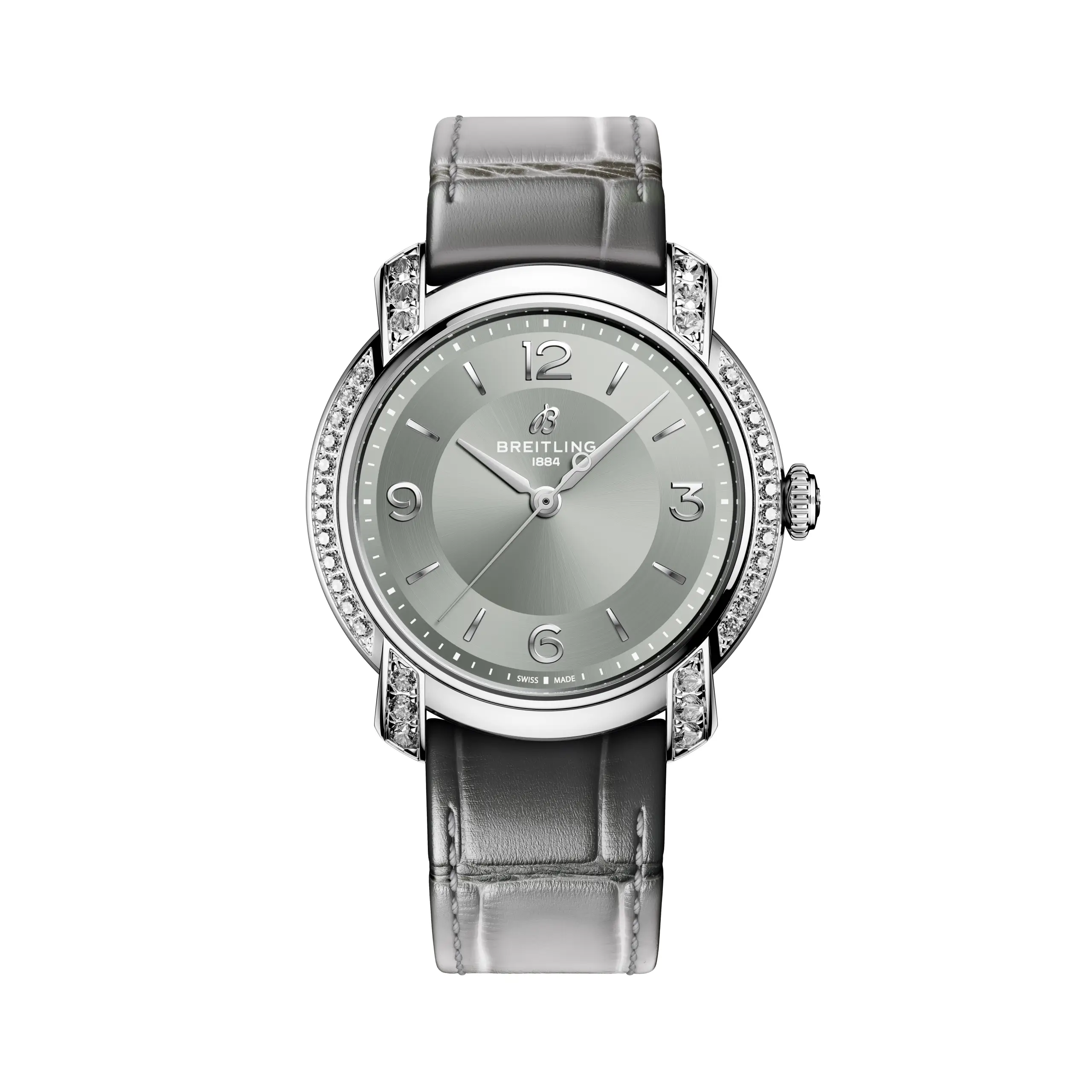 지름 36mm 모델은 오베르진, 세이지, 도브 그레이 컬러 그러에디션 처리한 다이얼과 악어가죽 스트랩을 매칭했다. 다이얼은 서로 다른 마감으로 영역을 구획해 입체감을 살렸다. 바늘은 날렵하고 아플리케 인덱스는 부드럽고 느낌을 전달한다. 좀 더 사치스러운 분위기를 연출하고 싶은 여성이라면 베젤과 러그에 다이아몬드를 세팅한 모델을 선택하면 된다. 레드 골드 케이스에 브라운 컬러 다이얼을 조합한 모델도 있다. 36mm 모델에는 COSC 인증을 받은 칼리버 10을 탑재했다. 파워리저브는 42시간이다. 36mm 모델의 경우 현재 브레이슬릿 옵션은 없지만 추후에 추가될 수 있는 여지를 남겨 놓았다.