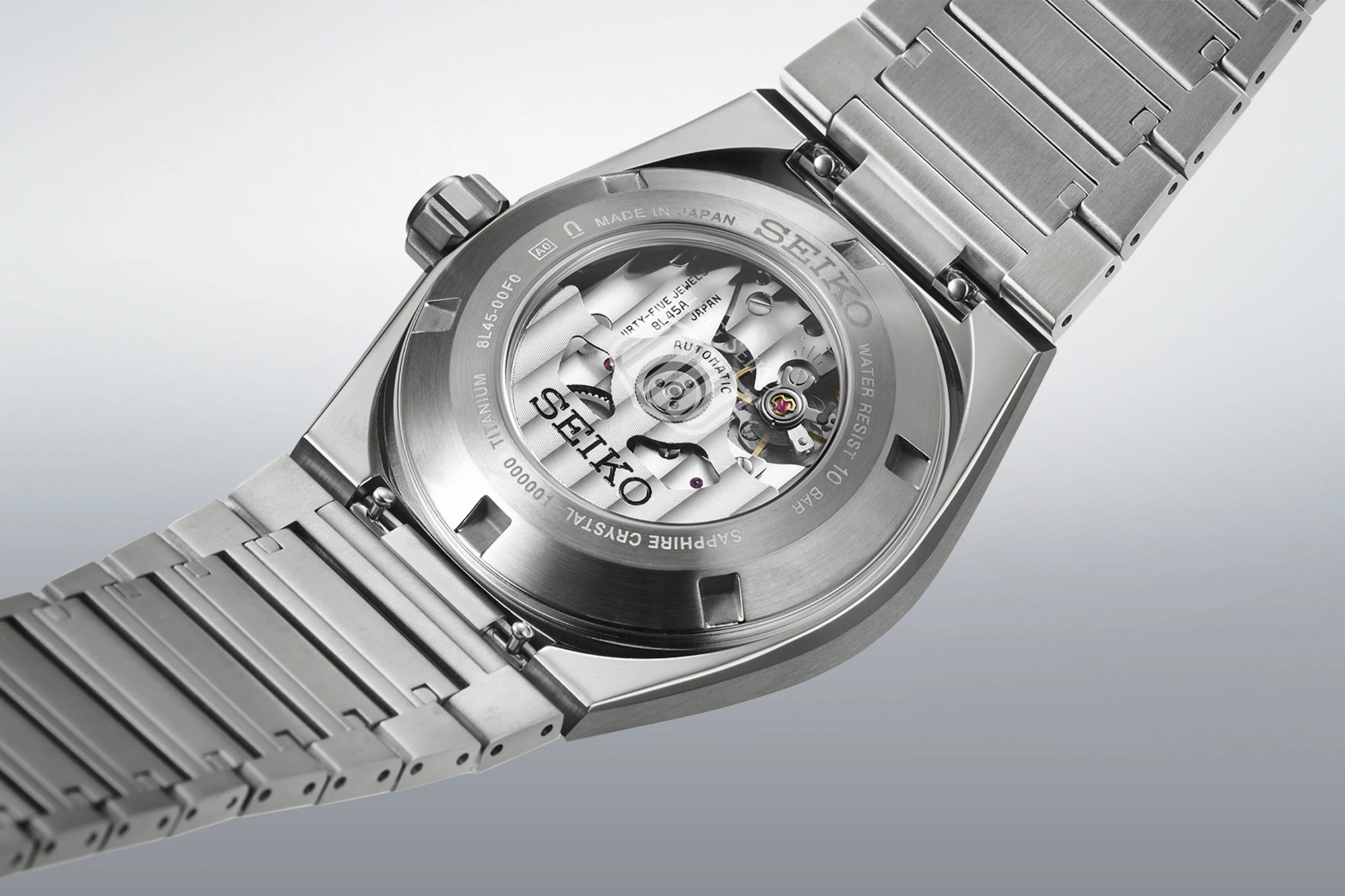 티타늄은 살짝 어두운 빛을 띄는데 폴리시드와 브러시드 마감을 통해 색의 대비가 더욱 두드러진다. 가공과 마감이 스테인리스 스틸이나 금보다 까다로운 티타늄을 다루는 세이코의 실력이 잘 드러나는 대목이다. 케이스에서 매끄럽게 이어지는 브레이슬릿도 같은 방식으로 마감했다. 짧은 링크로 이루어진 티타늄 브레이슬릿과 폴딩 버클은 손목에 부드럽게 감기며 안정적인 착용감을 제공한다. 브레이슬릿에는 퀵 체인지 시스템을 적용해 손쉽게 교체할 수 있다. 케이스의 지름은 41mm, 두께는 14.3mm다. 방수는 100m로 우수한 편이다.