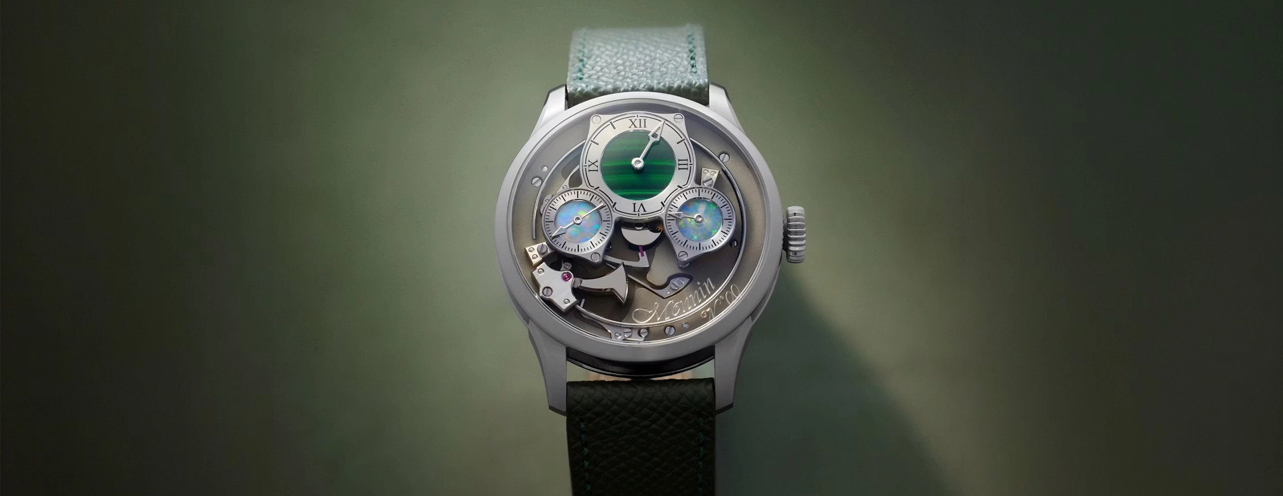 다이얼은 보라색, 은색, 검은색으로 나뉜다. 각각의 색은 운전자의 눈에 비치는 풍경을 대변한다. 보라색은 새벽녘의 고요한 지평선, 은색은 현대적인 아름다움을 자랑하는 도심의 고속도로, 검은색은 질주하는 도쿄의 밤거리에 해당한다. 디자인은 지평선 너머에 펼쳐진 도쿄의 경관과 대도시를 관통하는 속도에서 영감을 받았다. 새로운 다이얼 패턴은 수평선, 중심에서 사방으로 뻗어 나가는 선을 결합해 한층 더 역동적인 느낌을 선사한다. 이는 도쿄의 고속도로를 따라 광활한 스카이라인을 향해 질주하는 역동성을 표현한 것이다. 굵직한 바늘과 인덱스에는 루미브라이트를 채워 어둠 속에서도 시간을 쉽게 확인할 수 있다.