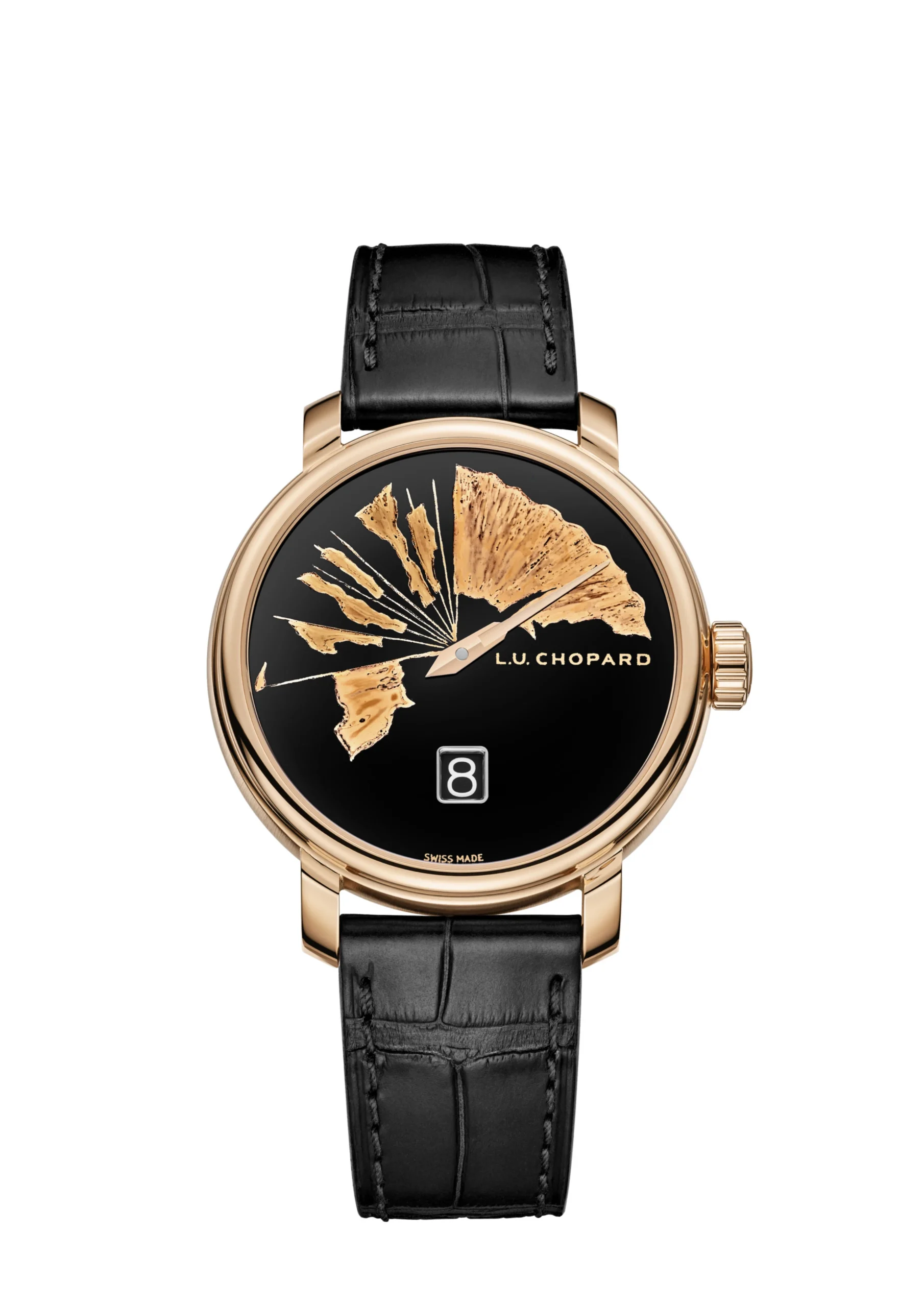 직경 40mm, 두께 8.28mm의 윤리적 옐로 골드 케이스 안에는 L.U.C 96.41-L 무브먼트가 장착되어 있다. 골드 오프센터 마이크로 로터를 통해 에너지를 효율적으로 축적하며, 두 개의 배럴을 수직으로 쌓아올려, 무브먼트 두께를 3.30mm로 유지하면서 65시간의 파워리저브를 구현한다. 전 세계 8피스 한정판.