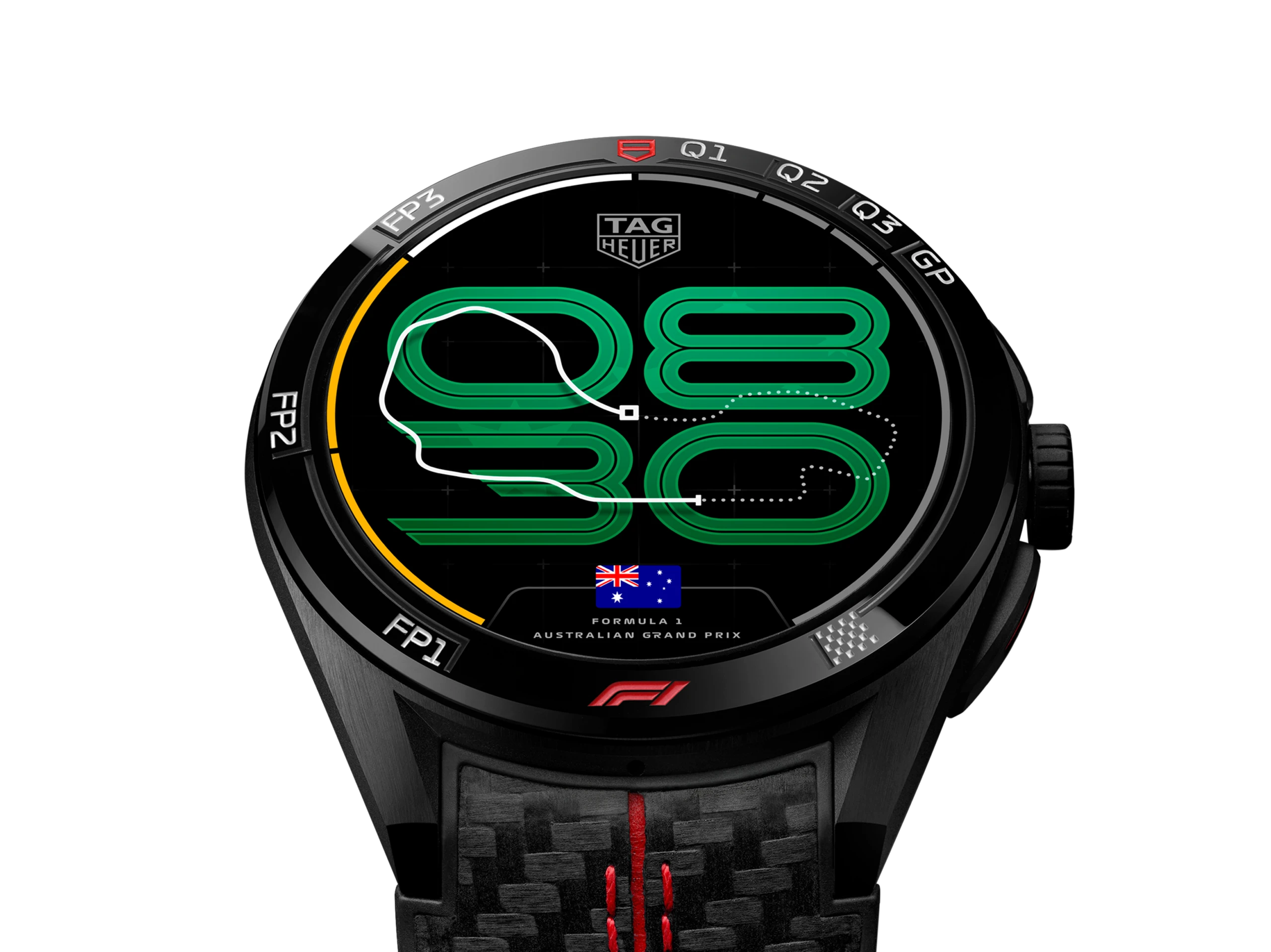이번 에디션은 단순히 F1의 이름을 빌리는 것을 넘어 F1과 모터스포츠의 상징적인 요소를 담아내는데 공을 들였다. 하이라이트는 히어로 워치 페이스인 레이스 트랙(race track)이다. 1.39인치 아몰레드 디스플레이를 통해 서킷의 형상과 디지털 타임을 함께 표시하는 것이 특징이다. 그랑프리 개최국의 국기와 레이스 명칭 그리고 그랑프리가 열리는 서킷의 고유한 형상이 사용자를 F1의 세계로 빠져들게 만든다. 24개 그랑프리가 열리는 주말이 되면 24개 디자인이 자동으로 전환된다. 초를 표시하는 움직이는 점이 서킷을 따라 이동하며 레이스의 흐름을 표현하는 것도 눈여겨볼만하다. 아울러 기존의 태그호이어 워치 페이스도 새롭게 단장했다.