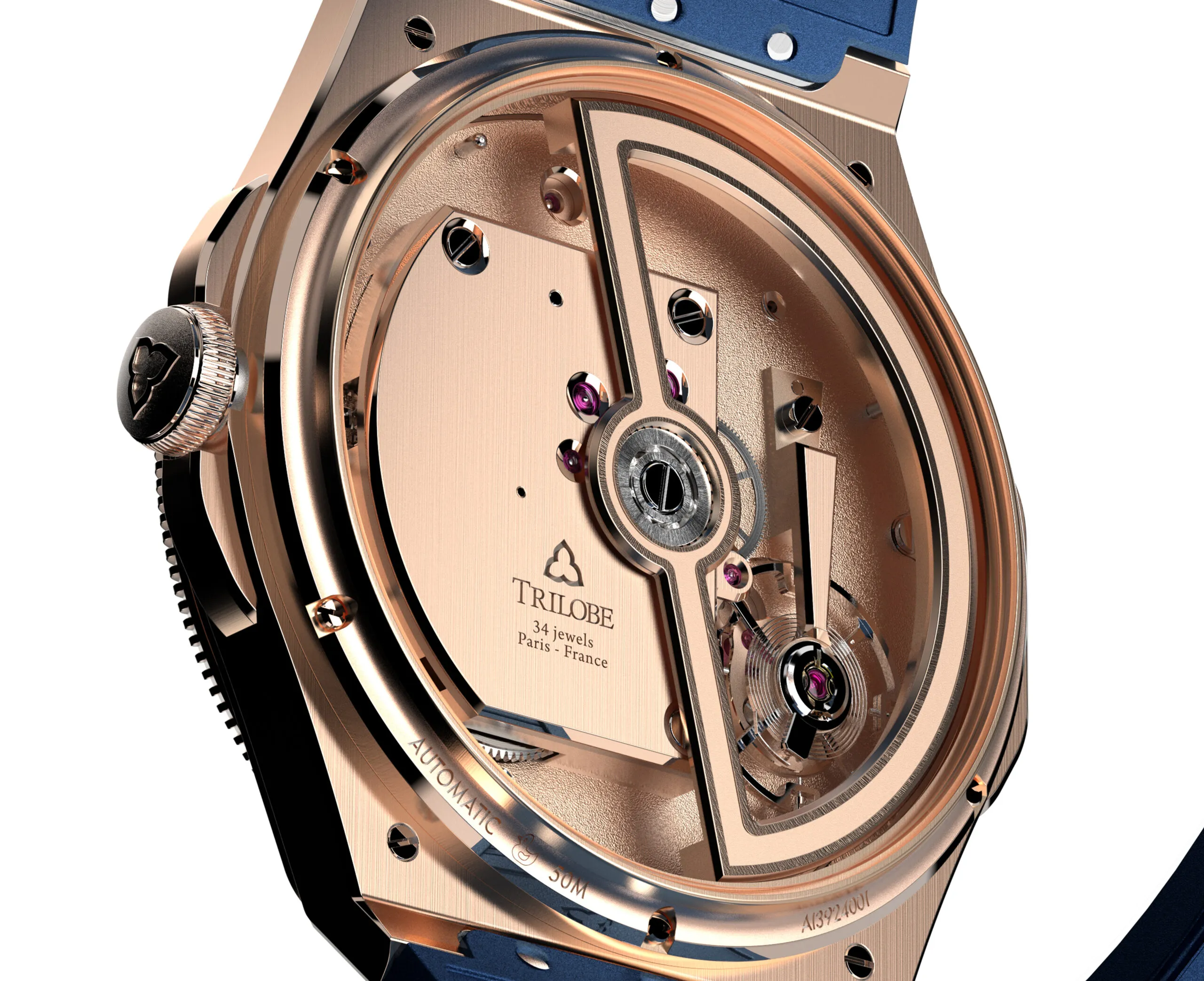 트랑트-두 컬렉션 전 라인업에는 트릴로베의 첫 인하우스 무브먼트인 X-니힐로(X-Nihilo) 칼리버가 탑재된다. 설계부터 조립까지 모든 공정이 파리 트릴로베 매뉴팩처에서 이루어지는 첫 번째 자체 제작 무브먼트다. 평평한 플레이트에 심플한 밸런스 콕과 밸런스 휠만 노출시킨 모습에서 과거 프랑스에서 제작되던 포켓 워치의 분위기를 느낄 수 있다. 개방형 로터는 텅스텐으로 제작해 회전력을 유지하면서도 내부의 구조를 최대한 드러내도록 했다.