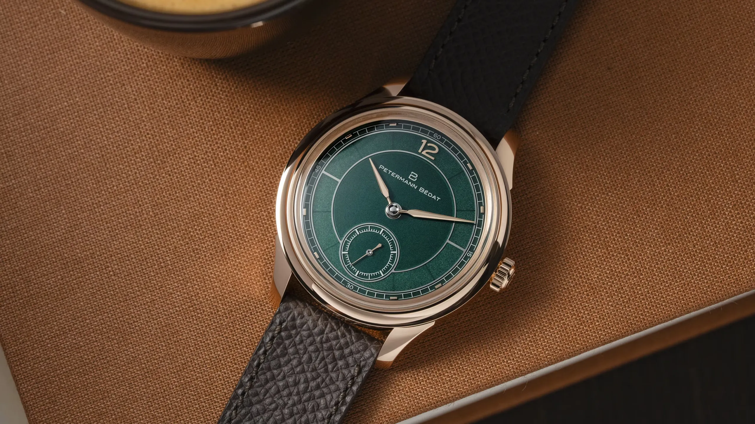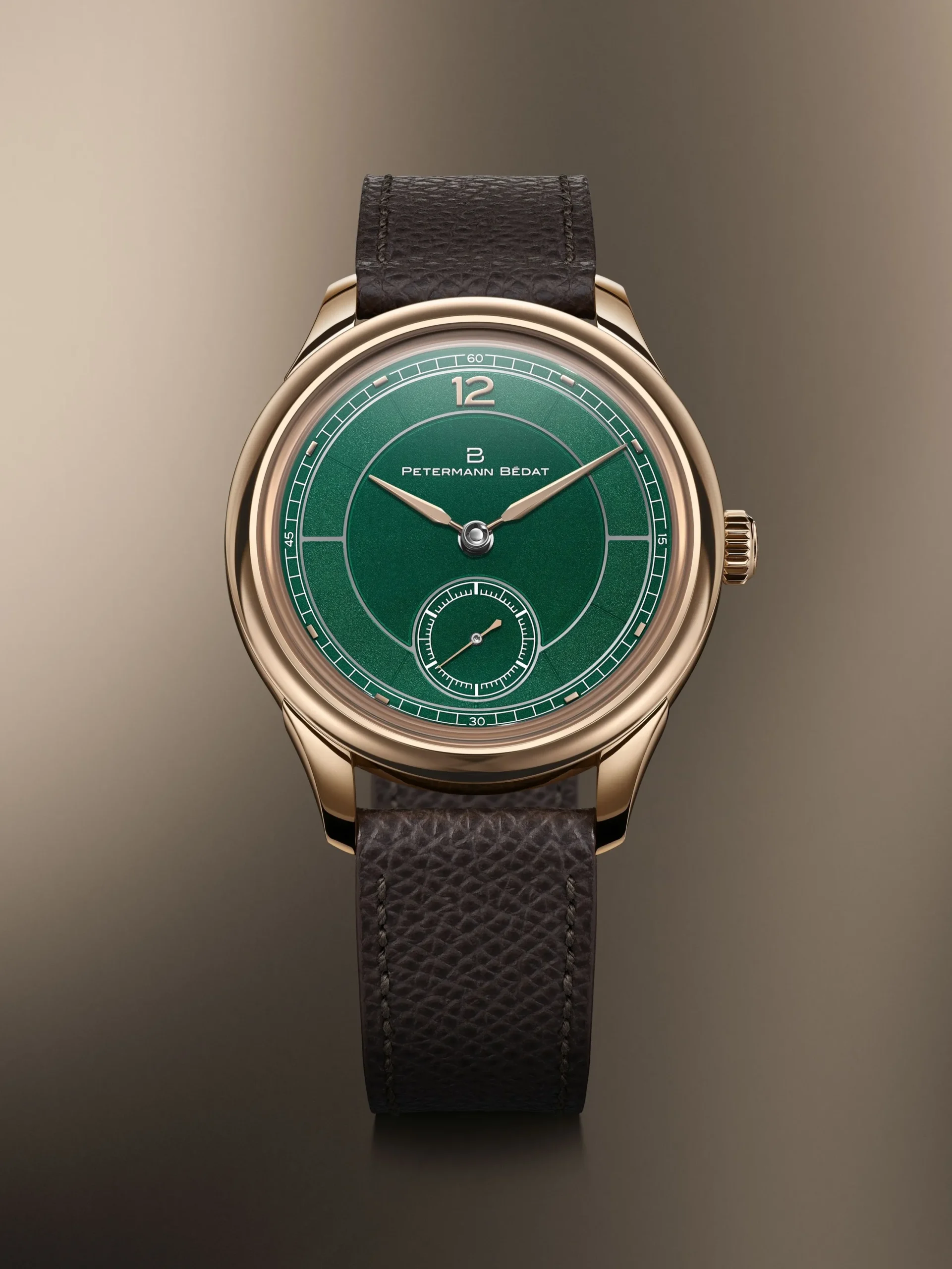다이얼은 무브먼트를 드러내는 최근의 유행과는 다소 동떨어져 있다. 이는 의도적인 것으로 페터만 베다가 유행을 무지성으로 쫓지 않음을 에둘러 강조한다. 섹터 다이얼에 기반을 둔 다이얼은 케이스만큼이나 고풍스러운 에나멜 기법으로 완성했다. 다이얼은 제네바의 다이얼 전문 제조 업체 올리비에 보셰(Olivier Vaucher)가 맡았다. 화이트 골드 플레이트에 레이저로 질감을 표현한 뒤 반투명한 초록색 그랑 푀 에나멜을 입혔다. 질감에 따라 색조와 깊이의 차이가 느껴지는 것이 특징이다. 12시 방향의 아라비아 숫자 인덱스와 아워 마커는 광택을 낸 뒤 다이얼에 부착했다. 로고를 비롯한 나머지 요소는 다이얼에 인쇄했다. 전작에서도 볼 수 있는 랜싯 스타일의 바늘을 그대로 가져갔다. 6시 방향의 스몰 세컨즈가 고풍스러운 분위기를 고조시킨다.