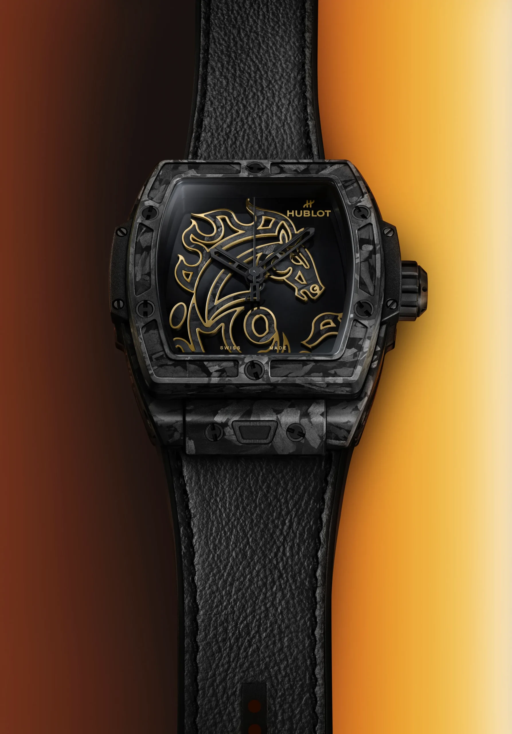 매년 새해가 되면 각 브랜드마다 해당 연도를 기념하는 십이지 시계가 등장한다. 대부분 기존 모델의 컬러 변주 정도에 그치지만, 위블로는 매년 새로운 창작물을 만들어낸다. 2026년 말의 해를 맞아 공개된 스피릿 오브 빅뱅 말의 해 프로스티드 카본(Spirit of Big Bang Year of the Horse Frosted Carbon) 역시 마찬가지다.