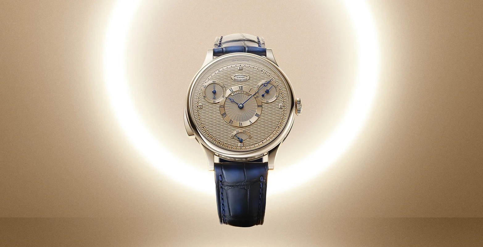 케이스에는 무광 및 유광 마감을 서로 대비시켜 입체감을 극대화했다. 특히 모서리를 둥글게 처리한 정사각형 베젤은 원형과 정사각형의 이상적인 조합으로, 표면은 새틴 브러싱, 모서리는 유광 폴리싱 처리해 고급스럽다. 시계 이름과도 연결된 다이얼의 수평 물결무늬(Ripples)는 하나하나 수작업으로 새틴 브러싱 처리했다. 특히 이번 모델에 처음 적용한 골드 브라운 컬러 다이얼이 로즈 골드 케이스의 톤과 잘 어우러진다. 다이얼 중앙의 빅벤 핸즈도 로즈 골드 소재로 제작해 골드 브라운 다이얼 및 스몰 세컨즈의 골드 컬러와 조화를 이룬다.