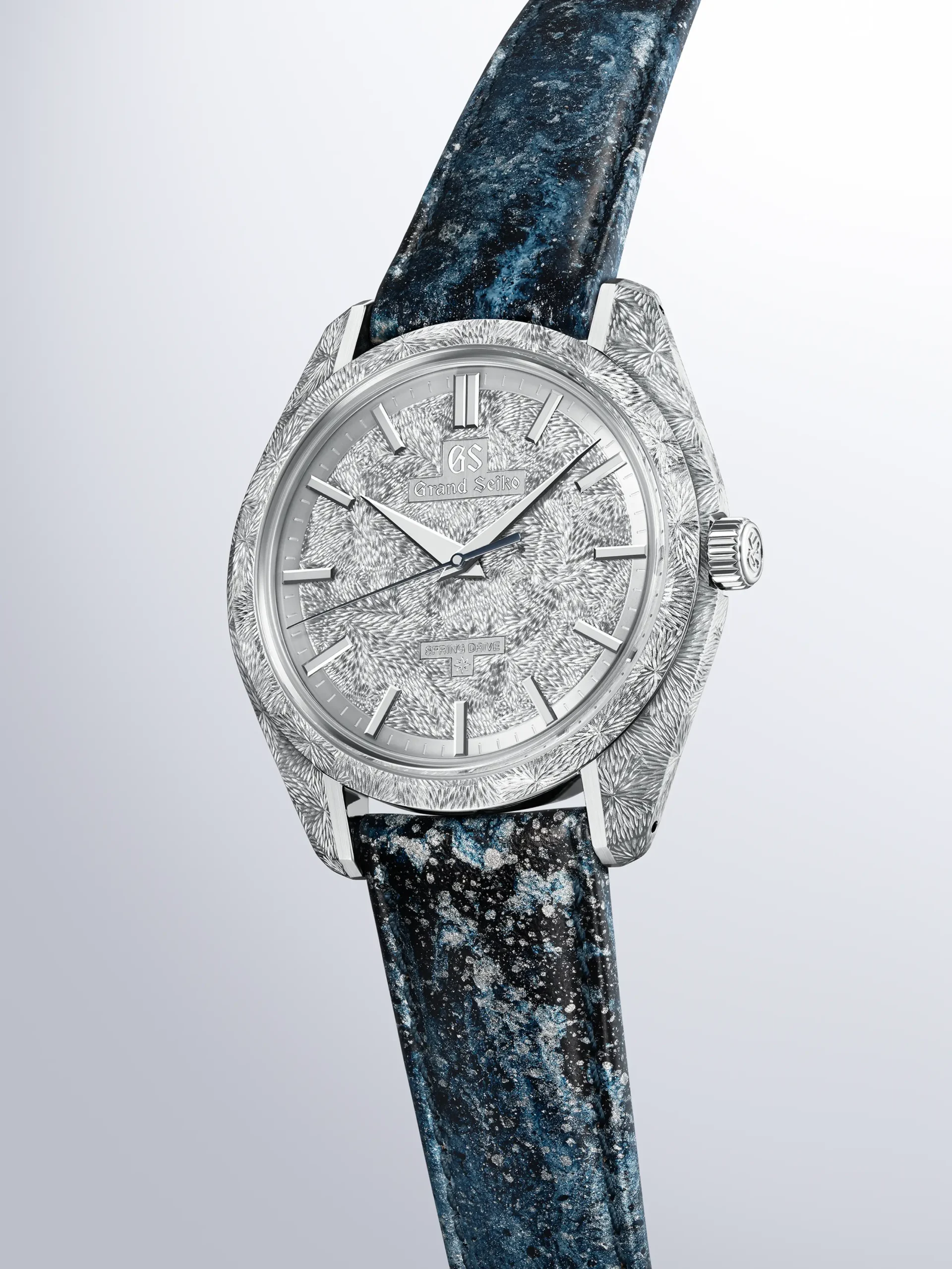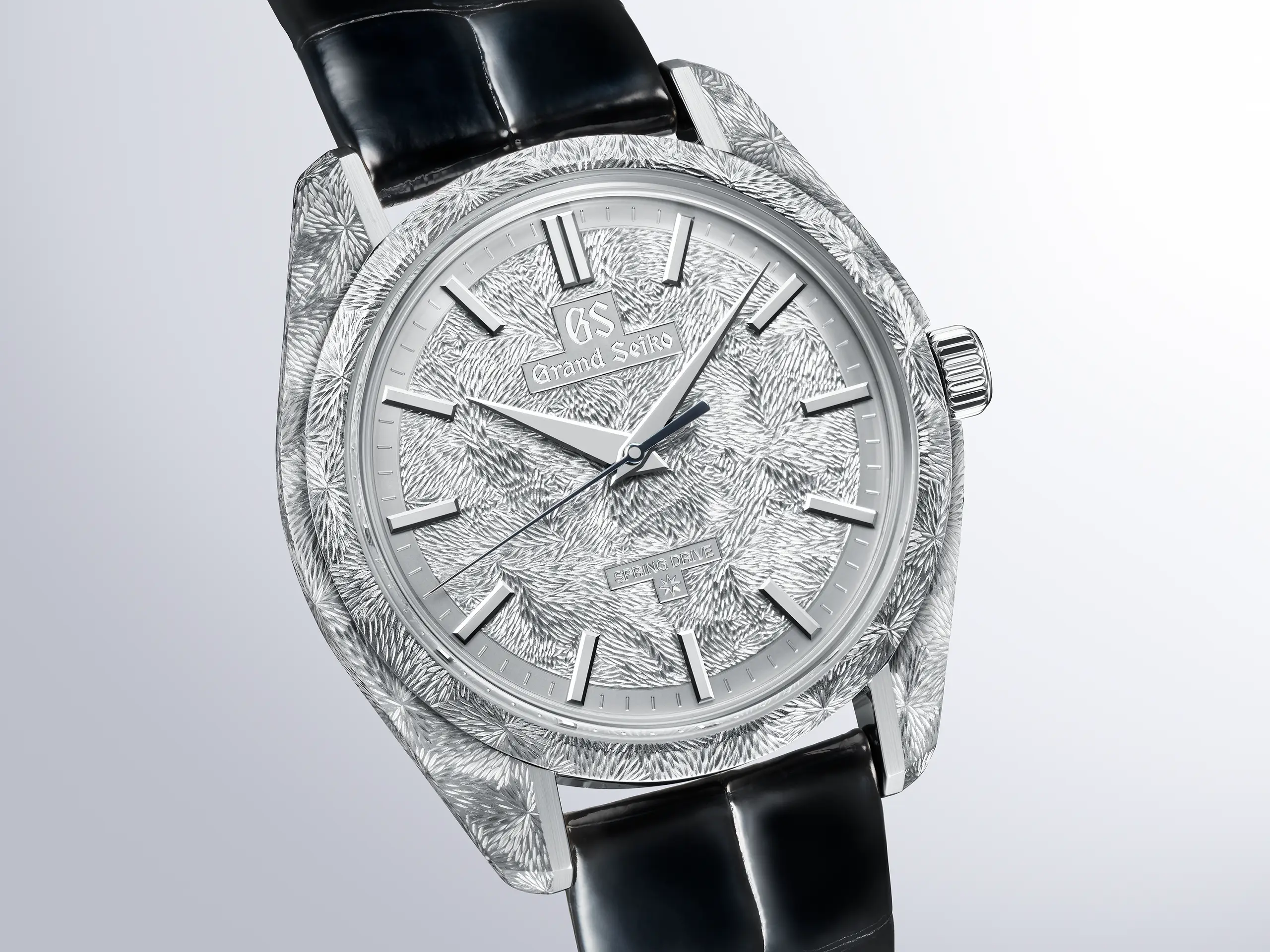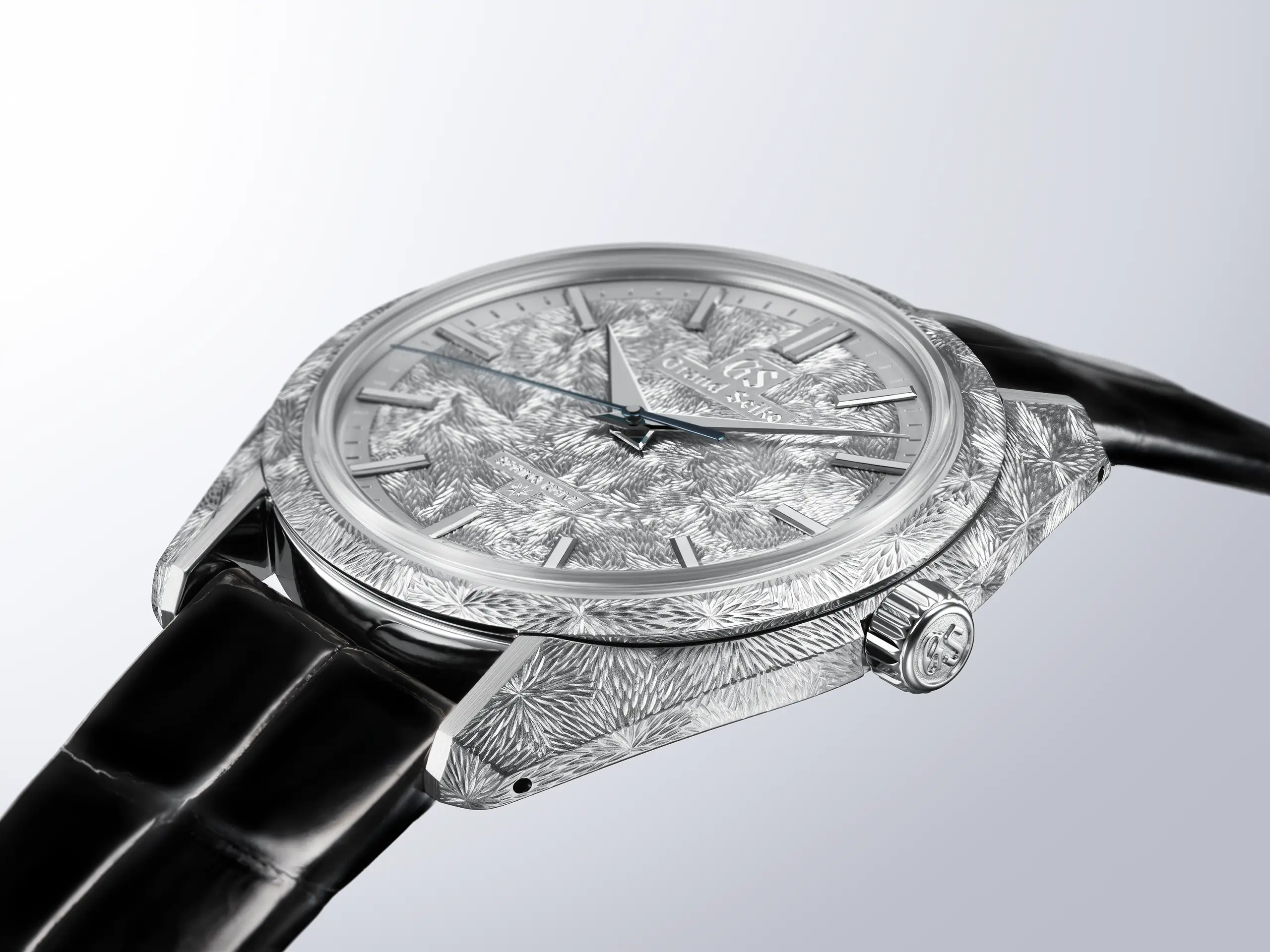 그랜드 세이코는 자연을 묘사한 다이얼을 앞세워 동양미와 자연의 숭고함이라는 테마를 구축했다. 이제까지는 다이얼에 국한되어 있었다면 이번 제품을 통해 세계관을 케이스로까지 확장했다. 수작업으로 조각한 플래티넘 케이스는 다이얼과 완벽한 조화를 이룬다. 마이크로 아티스트 스튜디오의 장인들은 케이스 전체에 길고 정교한 선을 하나하나 새겨 넣어 폭포에서 떨어지는 물줄기의 역동적인 모습을 형상화했다. 자라츠 폴리싱으로 완성한 매끄러운 표면 위에 남긴 장인들의 흔적은 빛의 각도에 따라 변화하며 어느 시계에서도 보기 힘든 입체감과 예술적 가치를 전달한다.