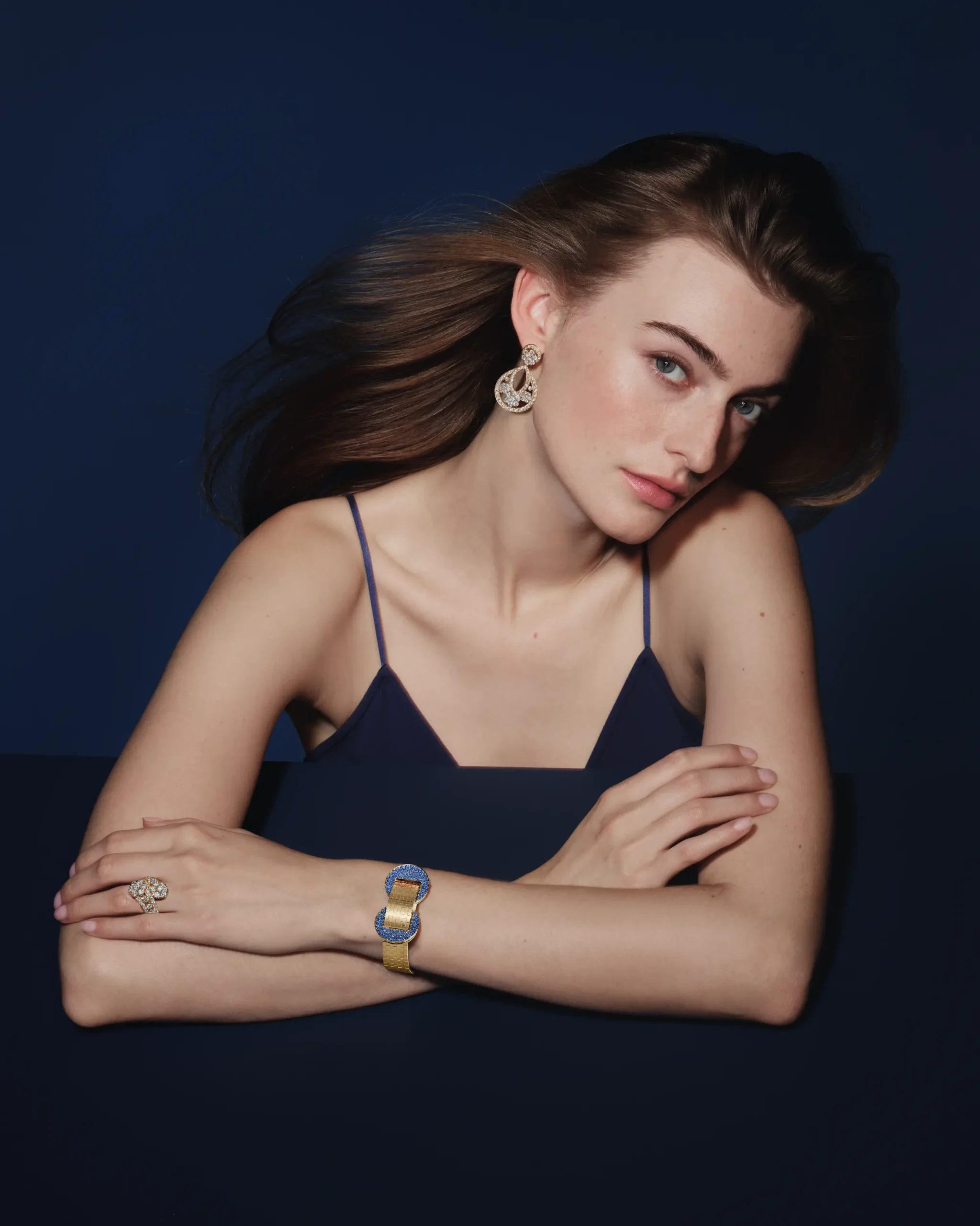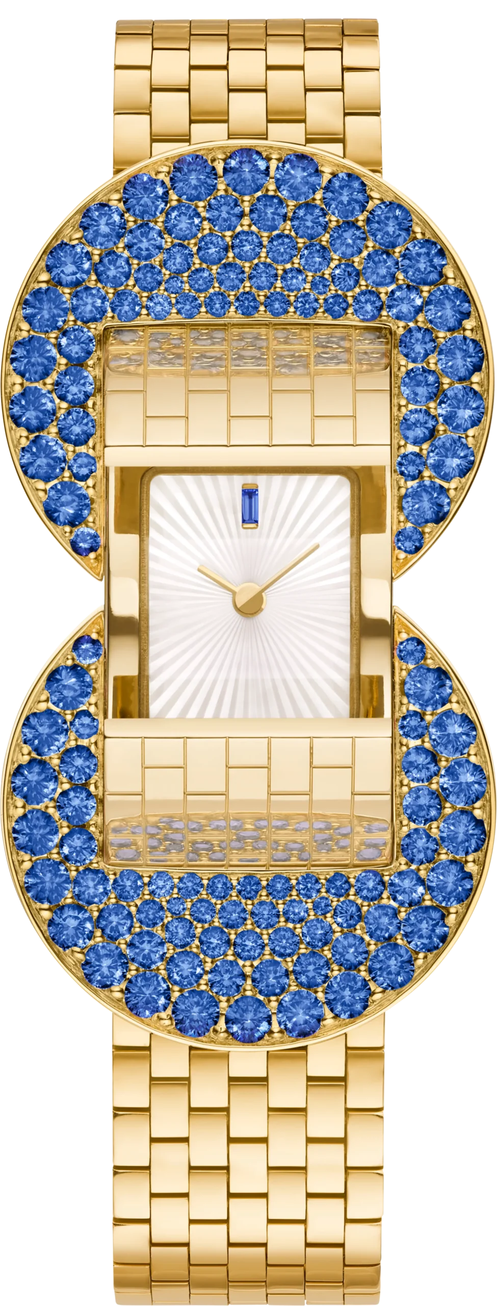 1934년에 탄생한 루도 브레이슬릿은 벨트에서 영감을 받은 손목을 감싸는 유연한 디자인으로 큰 사랑을 받았다. 올해 공개한 루도 시크릿 워치(Ludo Secret Watch)는 옐로우 골드와 푸른빛 사파이어의 선명한 대비가 매혹적이다. 특히 반원에 가까운 아치형 버클과 직사각형 골드 링크를 촘촘히 연결한 메시 브레이슬릿이 어우러지며 기하학적인 조형미를 드러낸다. 블루 사파이어를 세팅한 두 개의 버클을 동시에 누르면 내부에 숨겨져 있던 화이트 기요셰 마더 오브 펄 다이얼이 모습을 드러낸다. 커버를 닫으면 하나의 골드 브레이슬릿처럼 착용할 수 있다.