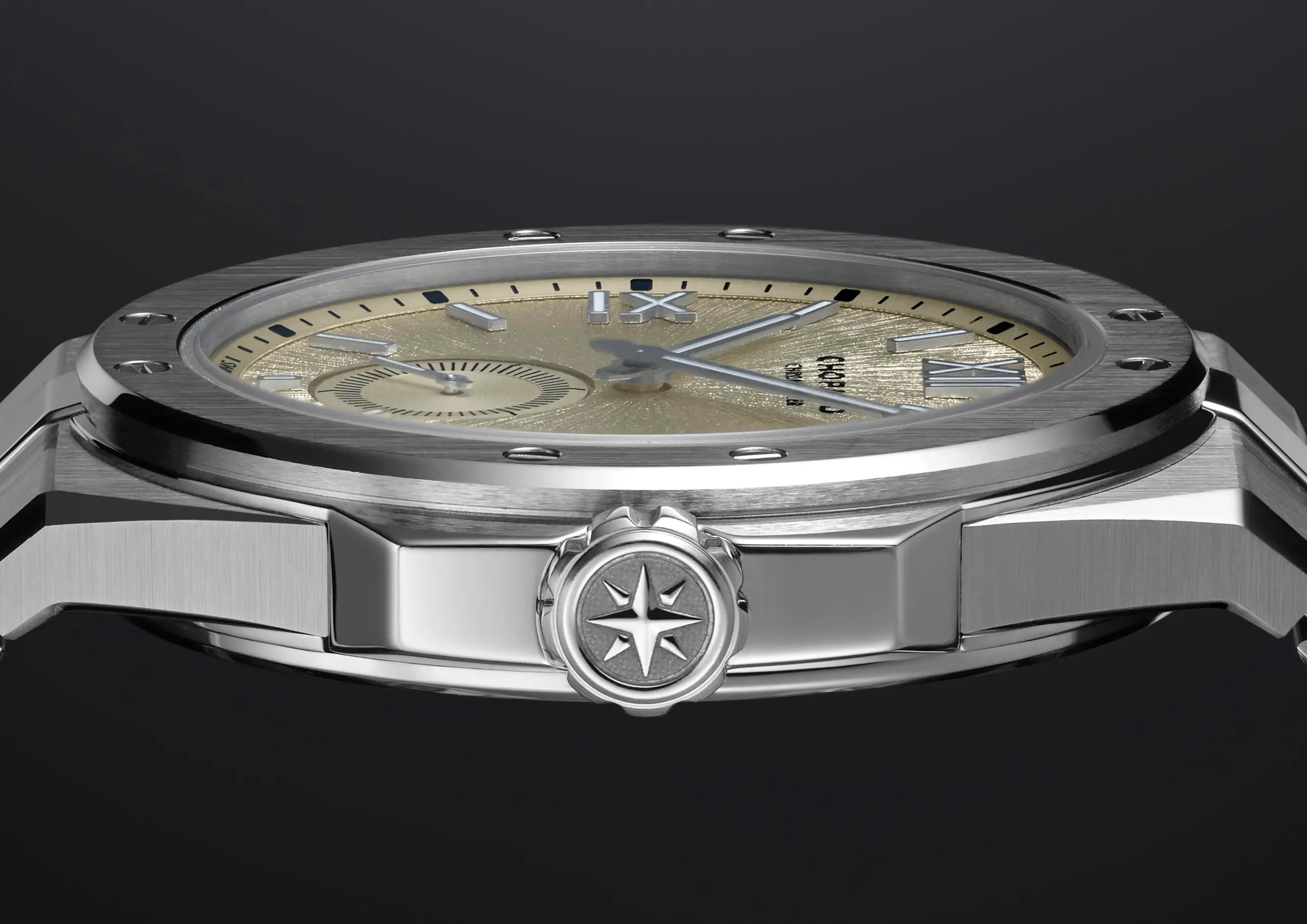 지름 41mm, 두께 8mm의 케이스는 루센트 스틸로 제작했다. 왠만한 드레스 워치 뺨치는 두께는 편안한 착용감을 제공할 뿐만 아니라 멋스러운 스타일을 연출하기에 적합하다. 스포티한 성격이 앞서는 시계인만큼 방수 성능을 100m로 설정했다. 크라운에는 알파인 이글 컬렉션에서만 볼 수 있는 나침도(compass rose)를 각인하며 자유롭고 어디에도 얽매이지 않는 이미지를 강조했다.