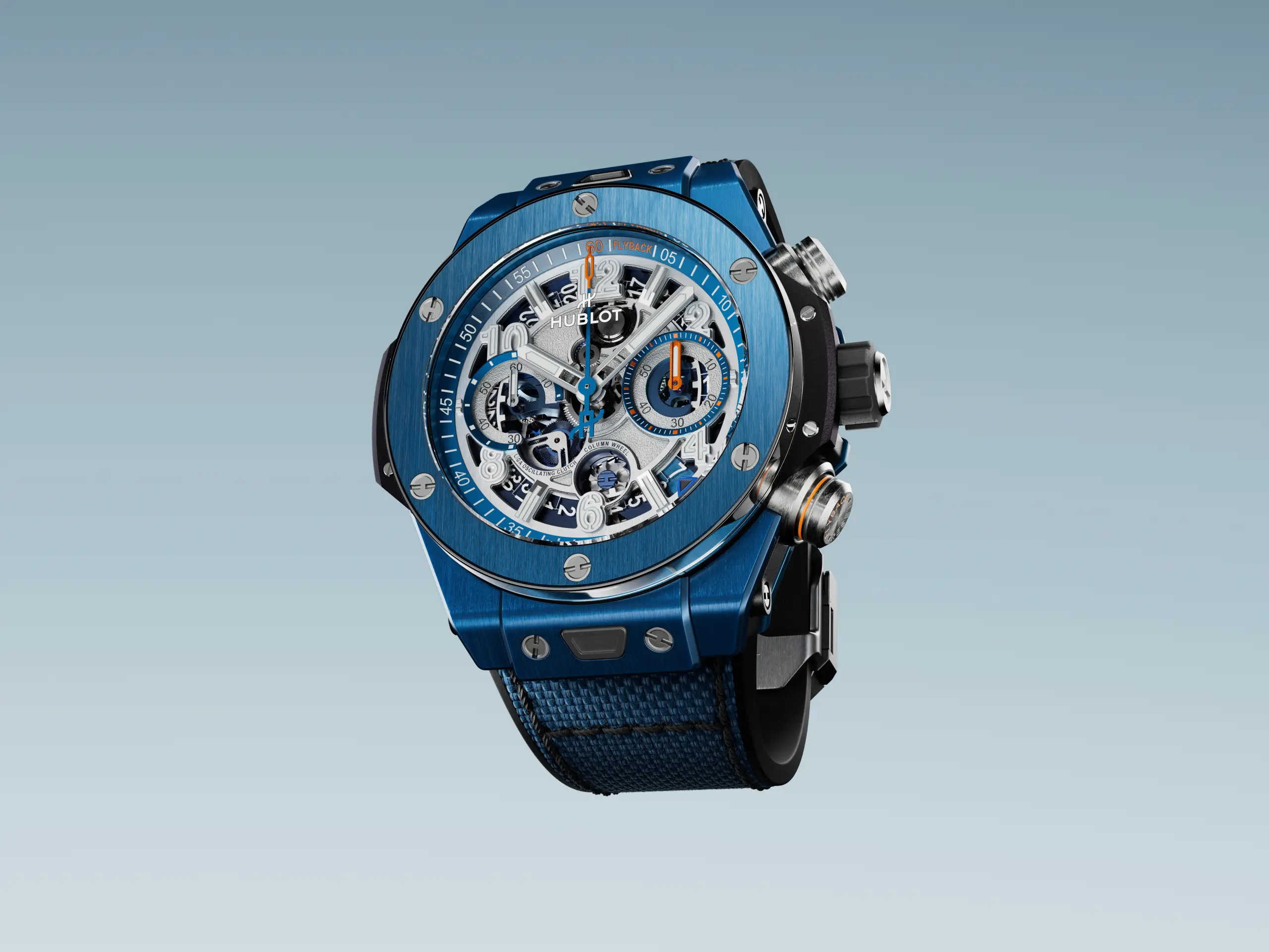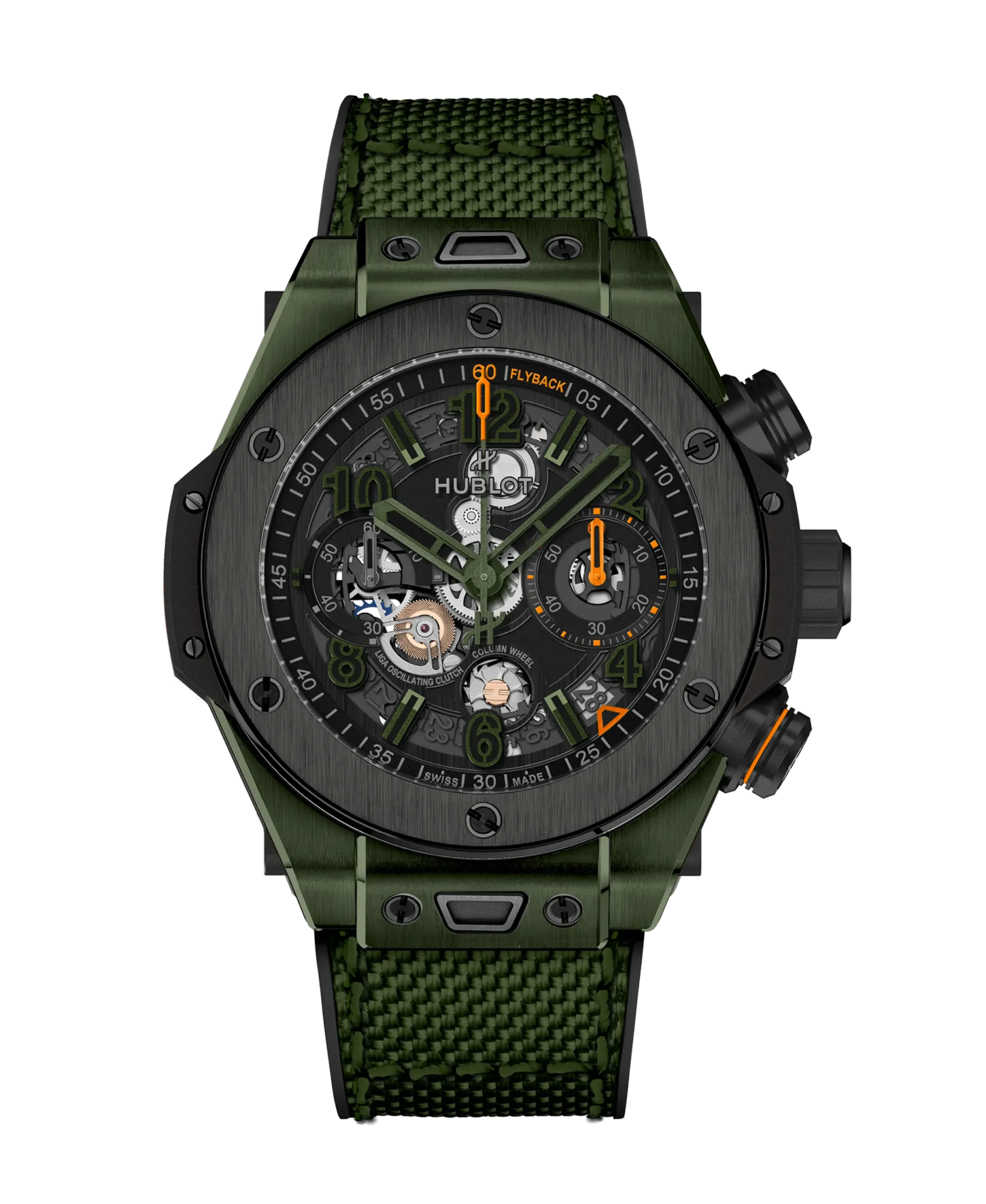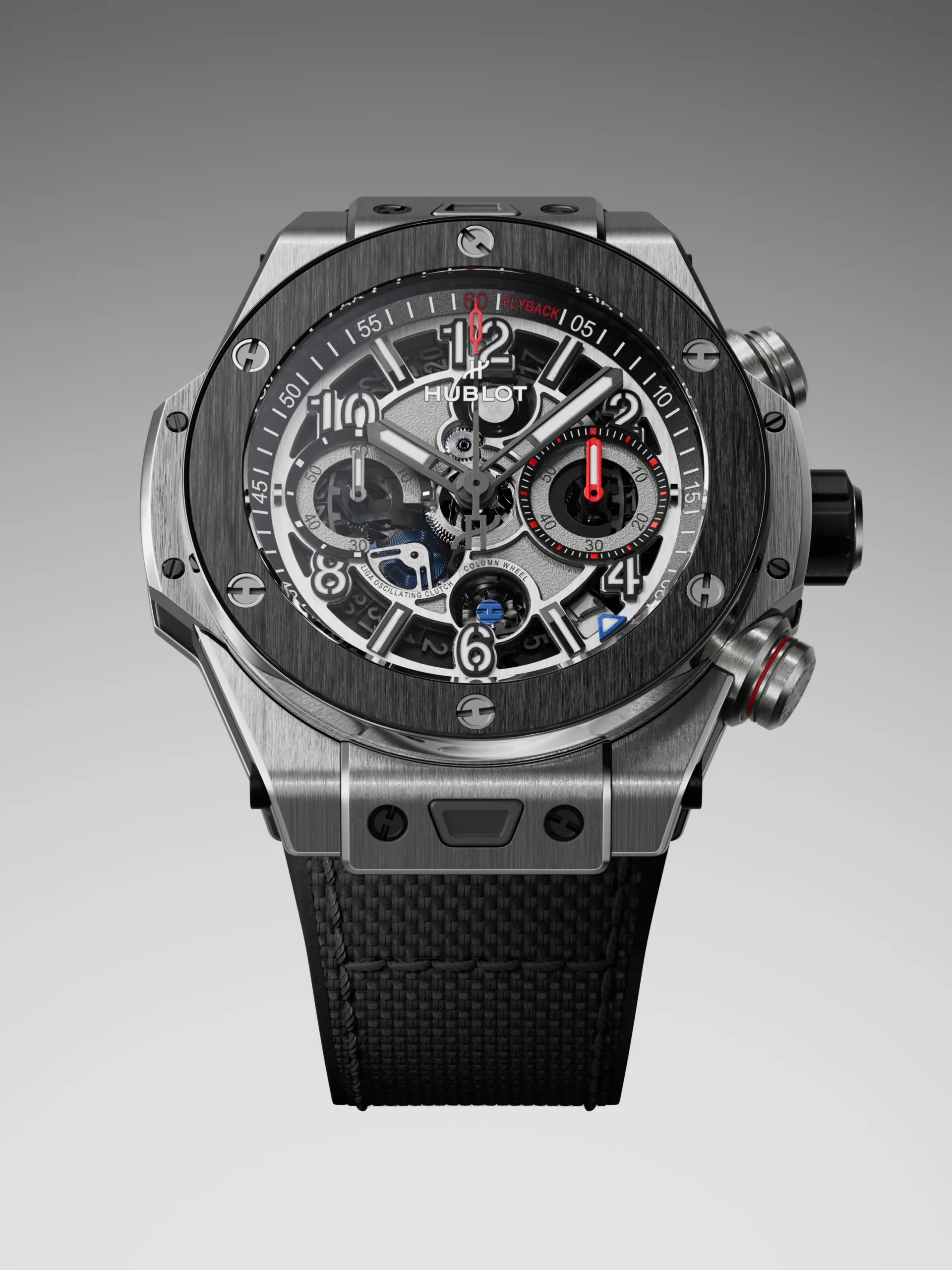 무브먼트는 2세대 유니코 칼리버인 HUB1280을 탑재했다. 칼럼 휠 방식의 플라이백 크로노그래프 칼리버로, 크로노그래프 작동 시 클러치를 거쳐 휠 간 톱니가 맞물리며 발생할 수 있는 점핑을 억제하기 위해 탄성을 지닌 스프링 투스 휠(Spring Tooth)을 이용한 클러치 구조를 적용했다. 시간당 진동수는 28,800vph(4Hz), 파워리저브는 72시간이다. 6시 방향 칼럼 휠, 8시 방향 오실레이팅 클러치에는 컬러 포인트를 더해 시각적으로 강조했으며, 각각 ‘Column Wheel’, ‘Liga Oscillating Clutch’라는 직관적인 문구를 더했다. 전 모델 패브릭 스타일 러버 스트랩과 블랙 러버 스트랩을 함께 제공하며, 특허받은 원 클릭 시스템을 갖춰 스트랩을 손쉽게 교체할 수 있다.