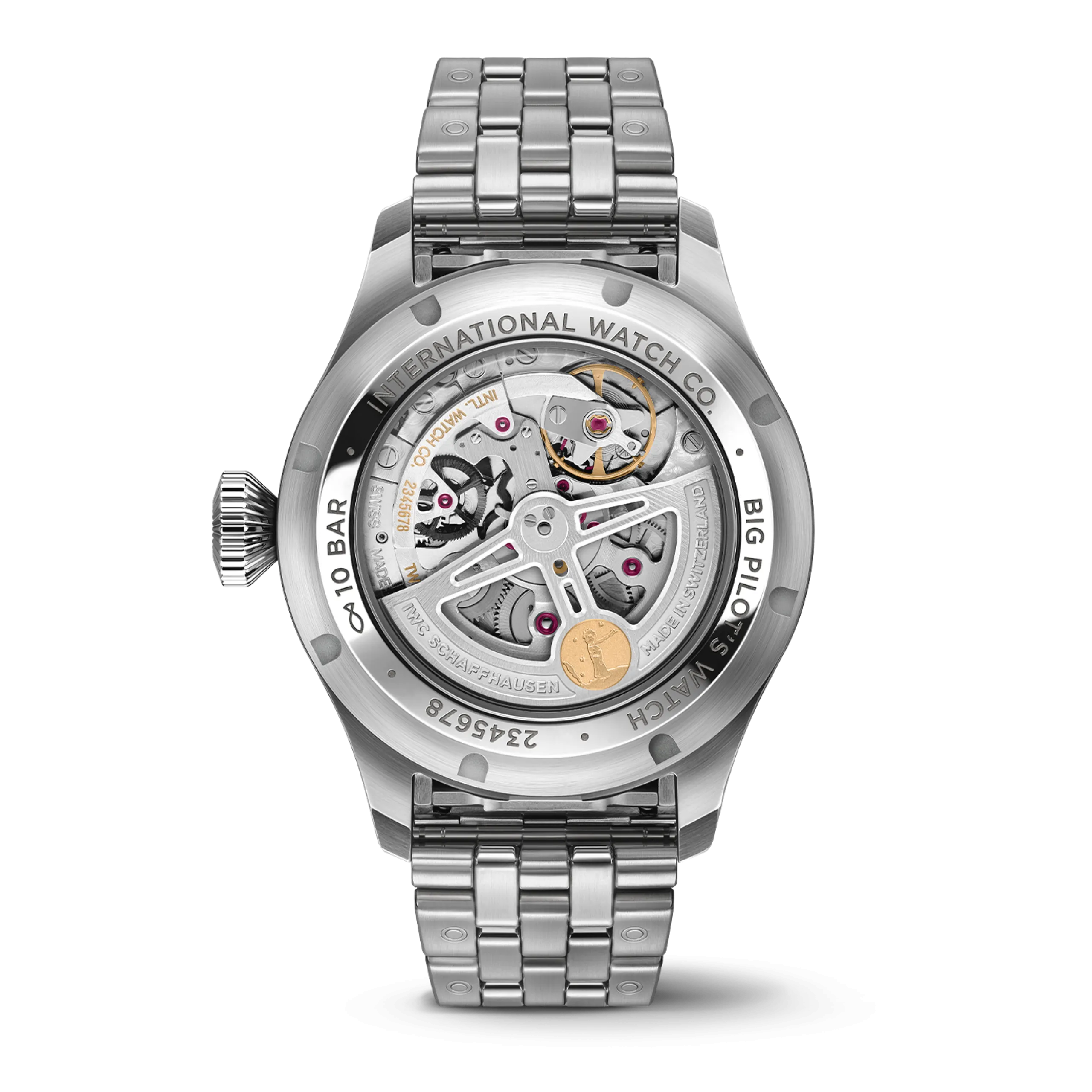 빅 파일럿 워치 퍼페추얼 캘린더 프로셋 어린 왕자 스틸 모델(Ref. IW329601)은 직경 42mm 스테인리스 스틸 케이스에 딥 블루 다이얼을 갖췄으며, 로듐 도금 아플리케 인덱스와 숫자, 핸즈가 모두 슈퍼 루미노바®로 채워진다. EasX-CHANGE® 시스템을 탑재한 5링크 스테인리스 스틸 브레이슬릿과 블루 러버 스트랩이 함께 제공된다.