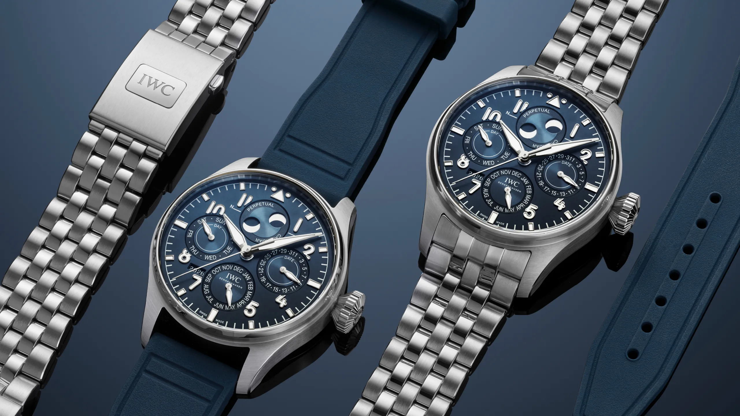 새로운 빅 파일럿 워치 퍼페추얼 캘린더 프로셋®은 총 세 가지 버전으로 출시된다.